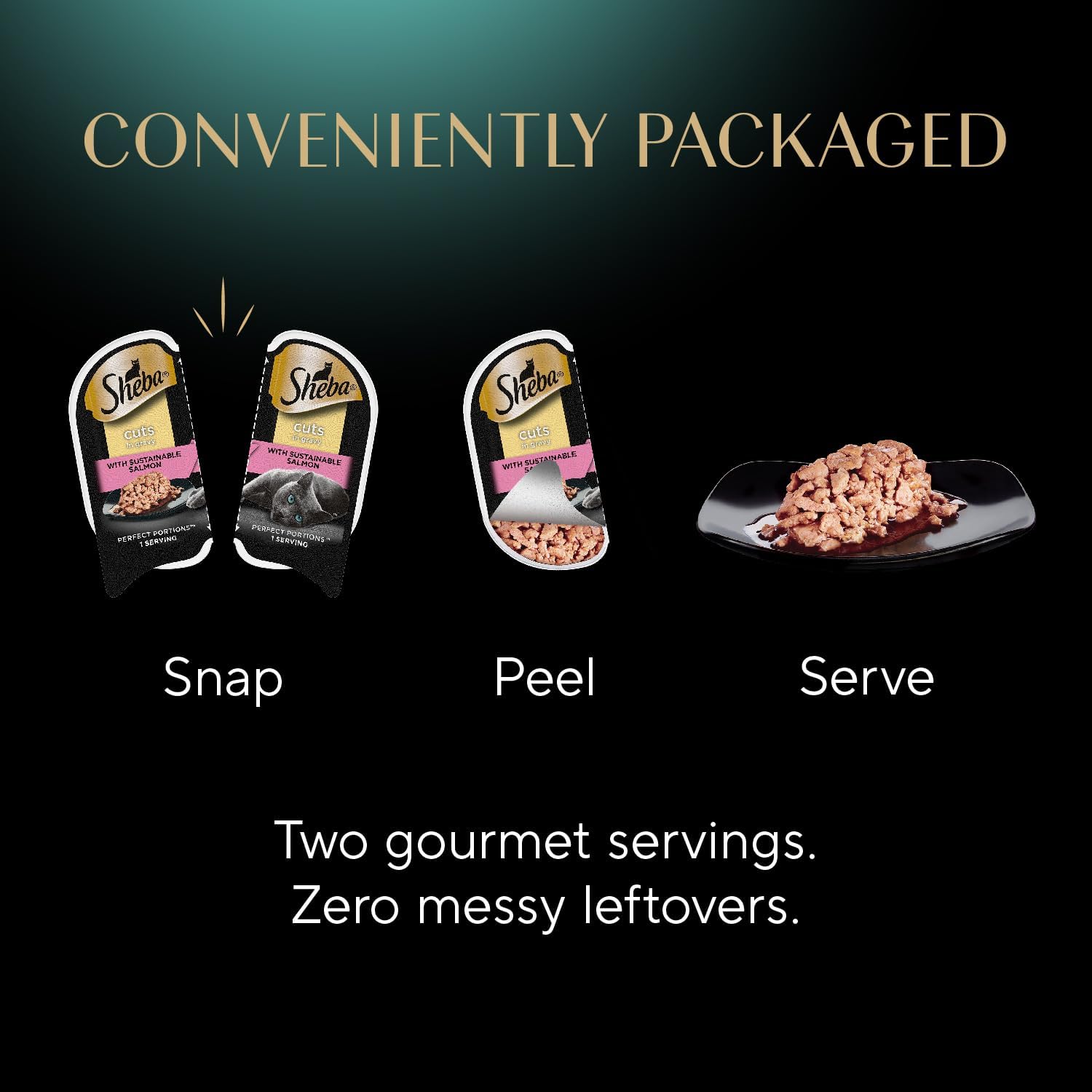 • Easy-to-Serve: Just snap, peel, and serve Sheba Perfect Portions Wet Cat Food