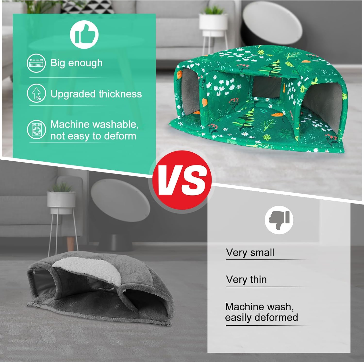 • Machine Washable: The guinea pig hideout is made of short plush and high-density elastic sponge; Not only is it very soft to the touch, but also more comfortable and warm, the fabric is thick enough to hold its shape and stay upright after many washes