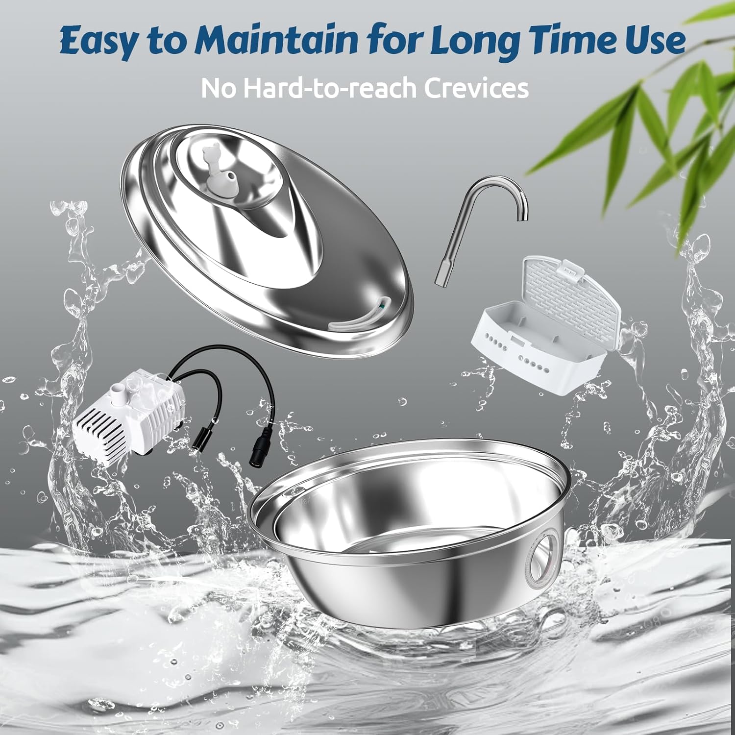• 😽【Upgraded 304 Stainless Steel Visual Pet Fountain】ORSDA Upgraded 3L/118oz with LED water level window, which help you clear view into your pets drinking. SUS 304 food-grade stainless steel cat fountain provides with hygienic and clean water for your fur babies.Helps ward off the chin acne.