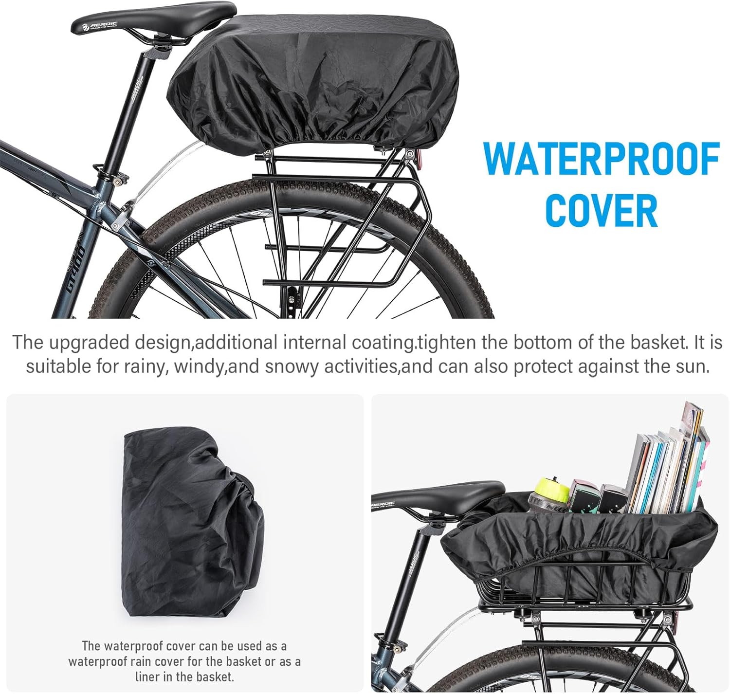 • 【Easy to Install】: The rear bike basket clamps to a standard rear rack, attaching and removing the cargo carrier from your bike is a breeze, allowing you to switch between carrying cargo and regular riding effortlessly. Our bike basket come with a waterproof cover, a cargo net, and ample installation accessories.