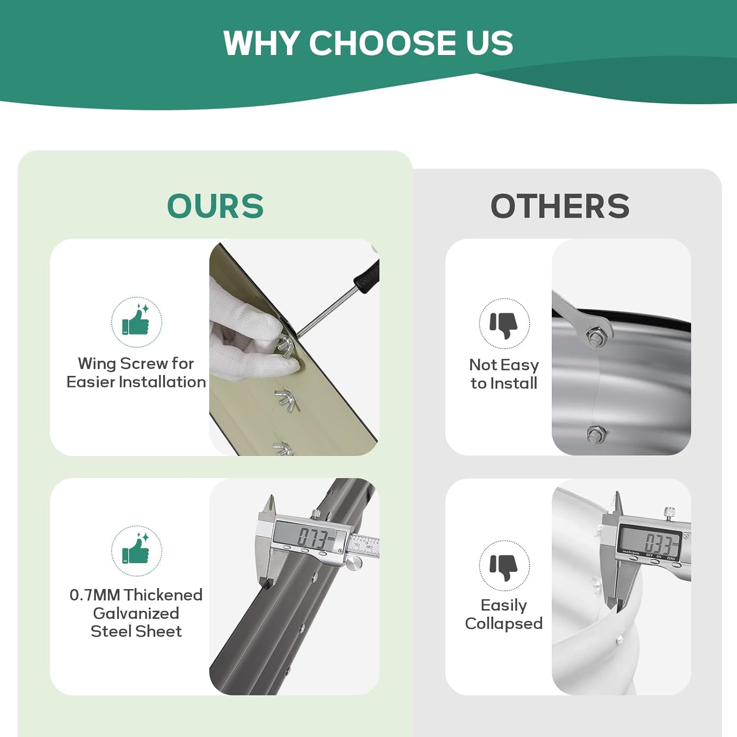 • 【 Easy Assembly 】Our metal raised garden bed is simple and easy to install. According to the detailed instructions and installation tools we provide, you can easily assemble your garden box and start planting with just a few simple steps and little time.