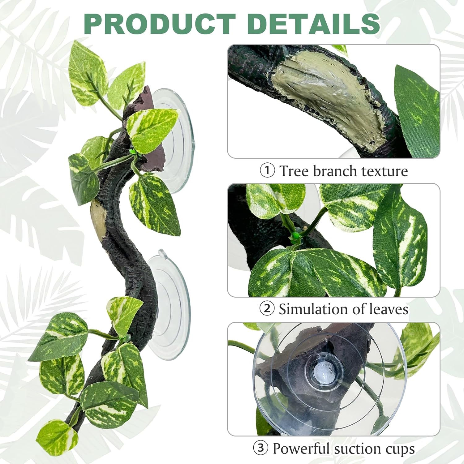 • [Powerful Suction Cups]: Branches for reptiles comes with 2 suction cups with strong adsorption, which can be stably fixed on the clean and smooth tank wall, not easy to fall off, let your lizard climb and play to its heart's content