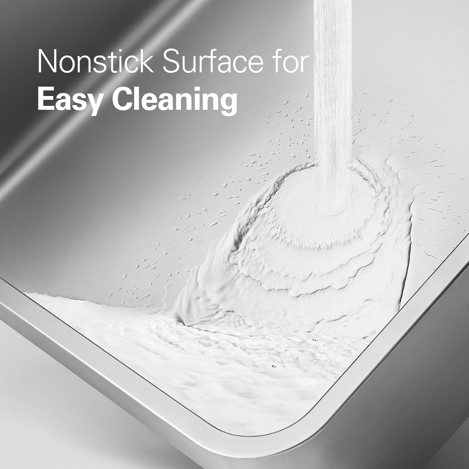 • 【Easy Cleaning for Odor-free Space】: Nonstick surface of the litter box with lid makes cleaning a piece of cake, as waste slides out effortlessly with a quick rinse of water. Unlike plastic litter box, the XXL stainless steel steel box does not absorb stains or odors, maintaining a fresh and hygienic environment for your cat