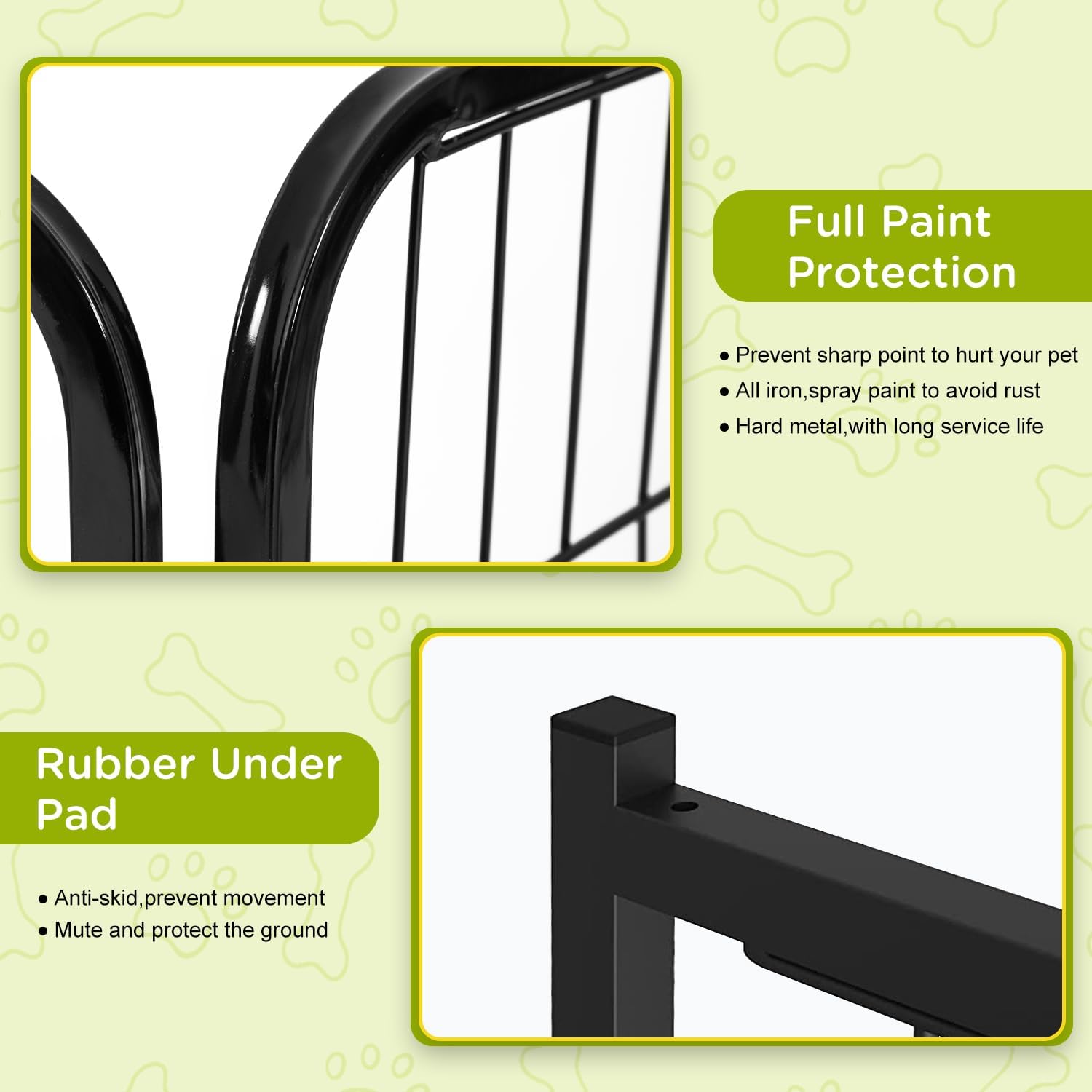 • DURABLE METAL FENCE PANELS: Heavy-duty iron with a rust-resistant finish makes this fence strong and secure. Use the sturdy fence panels as a dog fence outdoor for yard or indoor setup.