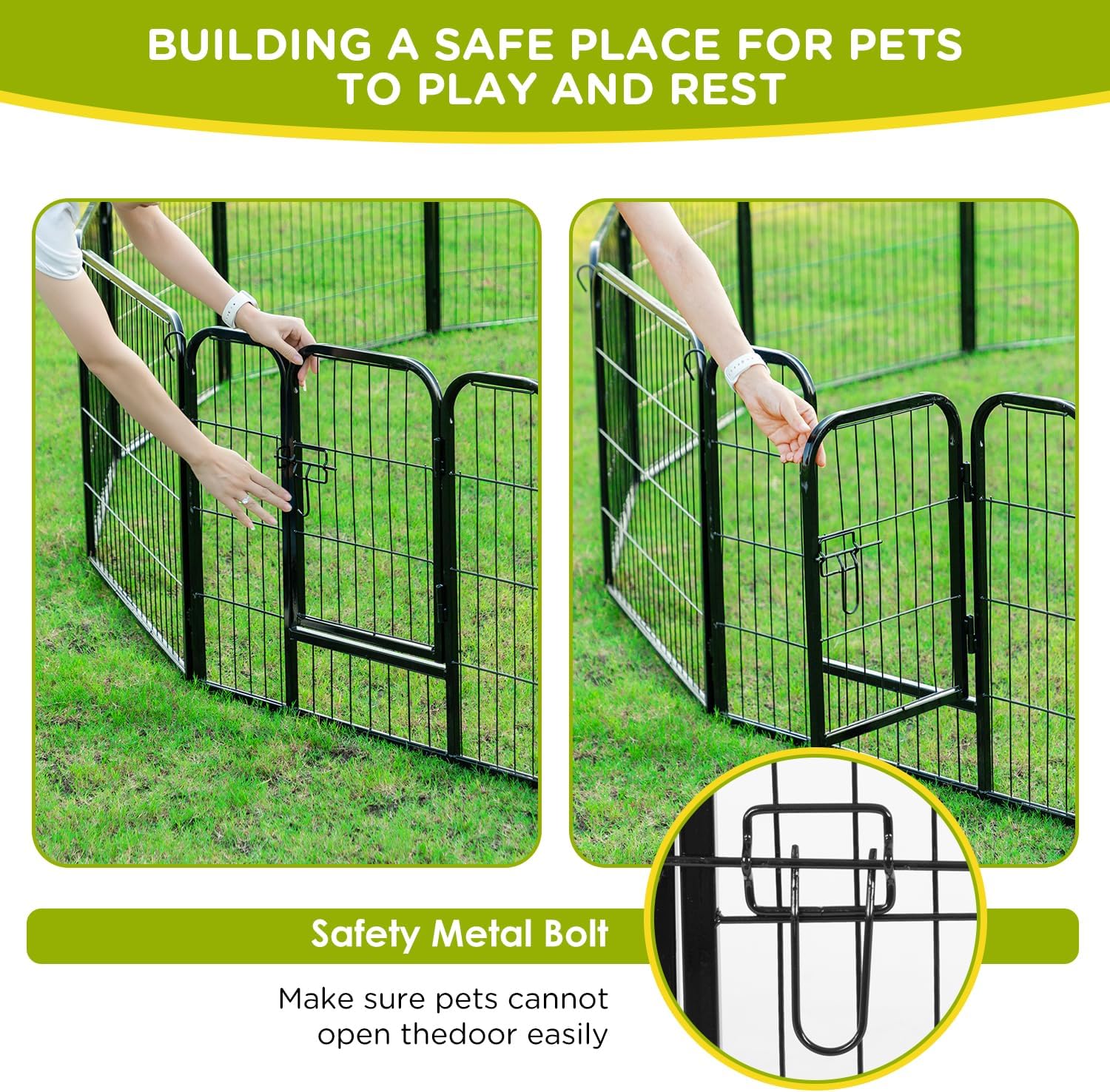 • USE AS EXTENSIONS OR REPLACEMENTS: These strong durable metal fence panels easily connect to expand your existing dog playpen or replace damaged sections, keeping your petโ€™s area safe and secure.