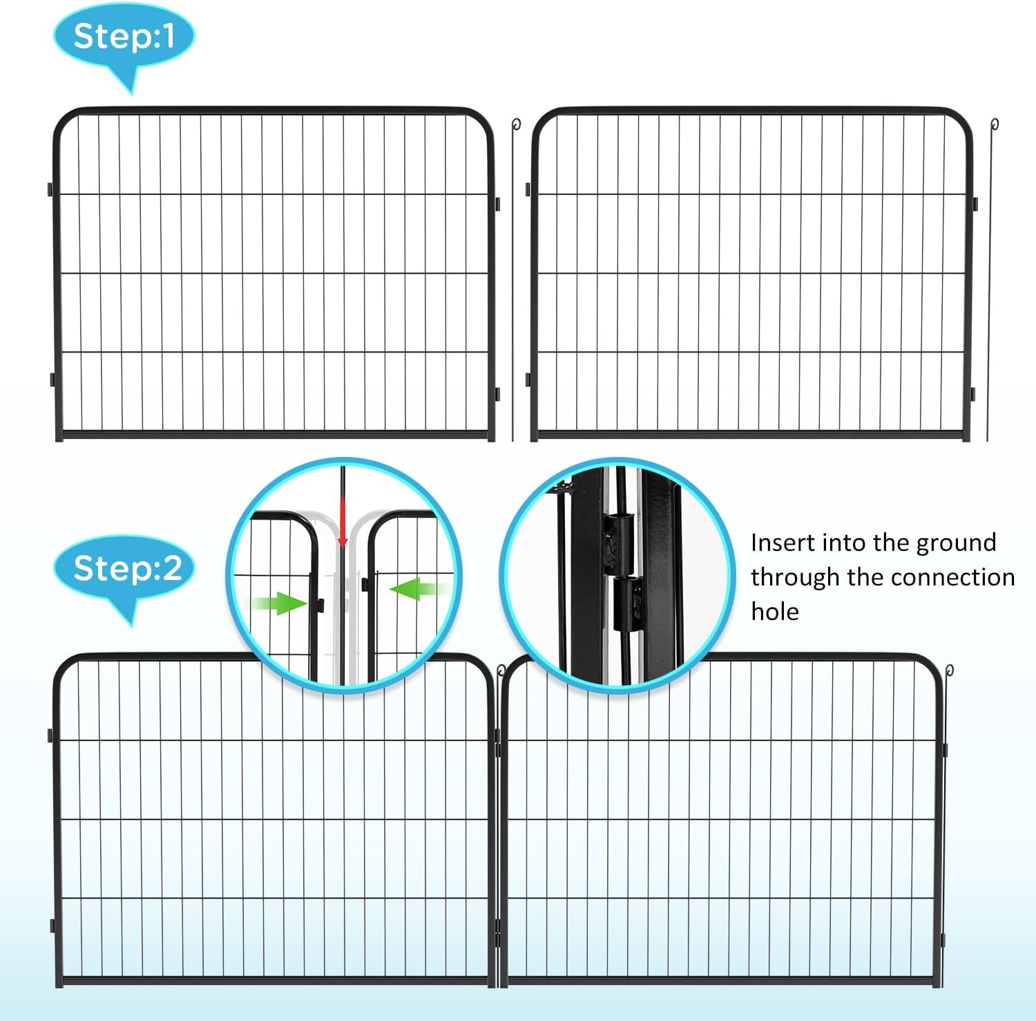 • USE AS EXTENSIONS OR REPLACEMENTS: These strong durable metal fence panels easily connect to expand your existing dog playpen or replace damaged sections, keeping your petโ€™s area safe and secure.