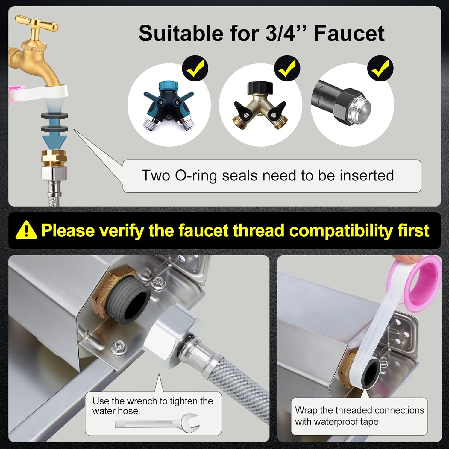 • [Easy to Install]: You just confirm if your faucet has a 3/4in GHT standard thread. The included accessories have everything needed for a hassle-free setup. With mounting screws, it can be wall-mounted or placed on the ground, making it perfect for yards or farms Kind tips: Users should verify thread compatibility before purchase for a smooth connection