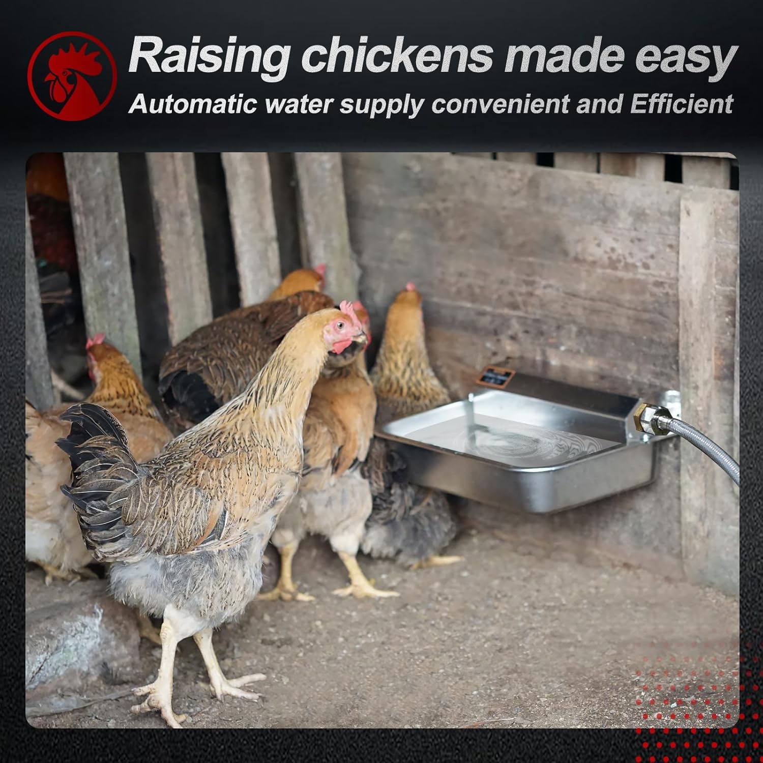 • [Patented Automatic Water Fill Dispenser]: The automatic water dispenser controls the water level with a valve, ensuring a steady supply without electricity, removing any shock risk. The valve automatically fills and stops filling at the set water level, providing clean water for pets and poultry. Eco-friendly and safe, it's ideal for both indoor and outdoor settings