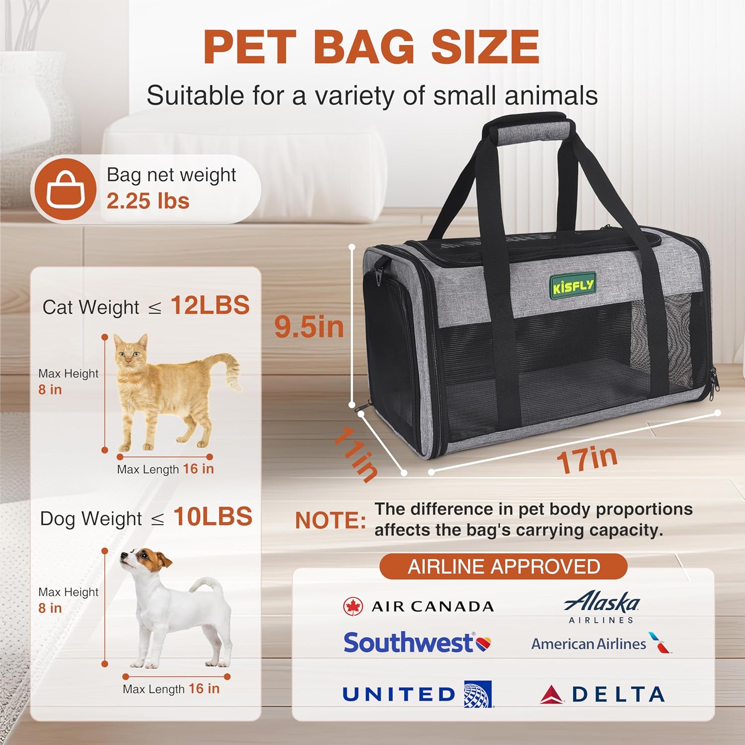 TSA Approved Pet Carrier in Cabin – Portable Travel Bag with Litter Box for Cats, Small Dogs, Kittens, Puppies & Rabbits (17"x11"x9.5"), for Pets up to 12 lbs, Gray