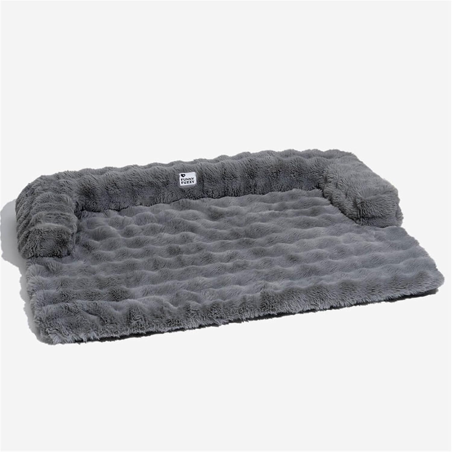 FUNNY FUZZY Pet Fluffy Fuzzy Calming Dog Couch Bed Sofa Protector Washable Pets Mat for Large Medium Small Dogs and Cats (Grey,37.4 × 33.46 × 6.3 in)