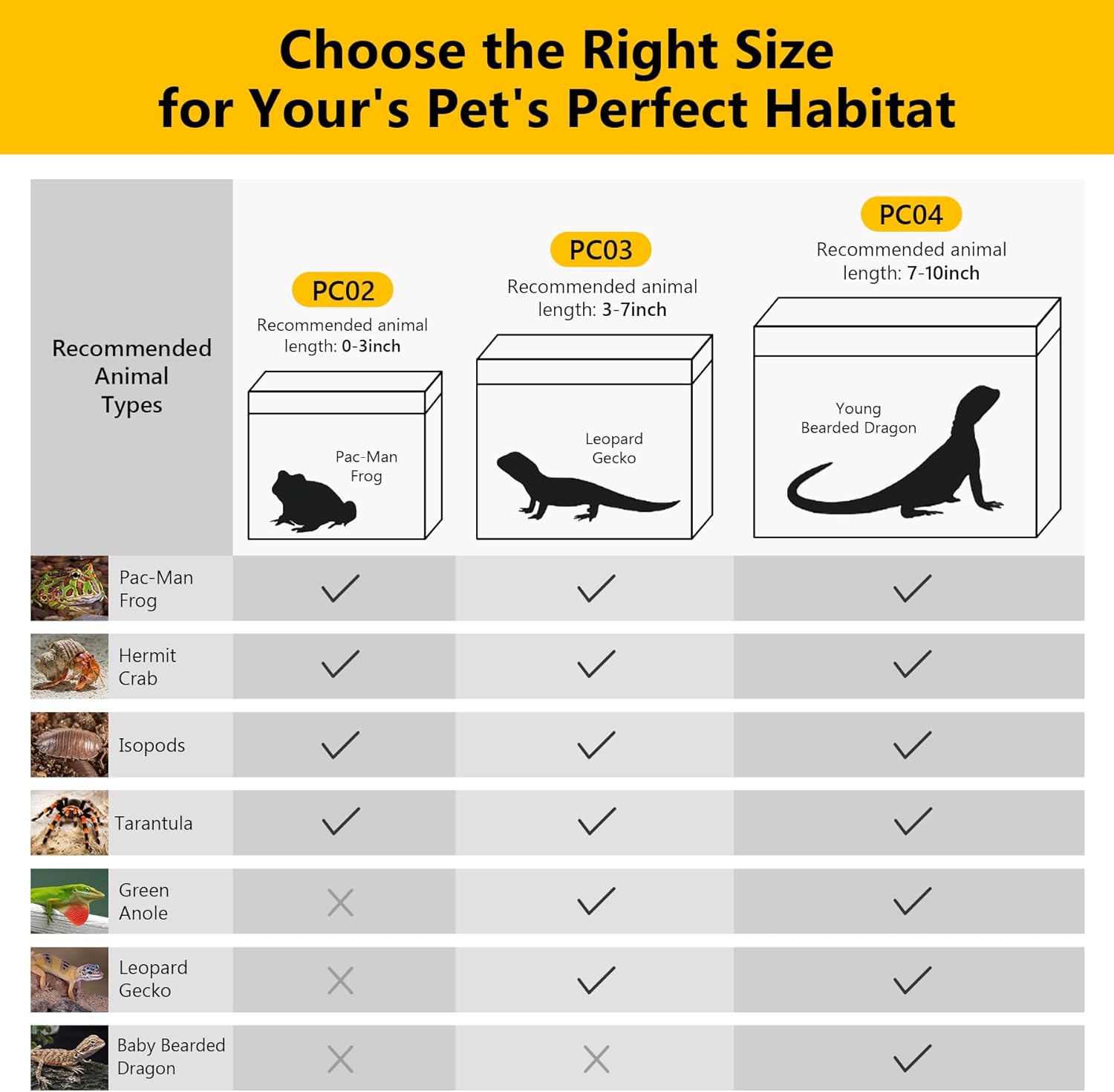 - Never Broken: Crafted from high quality PC materials that are shatterproof, scratch resistant, and wonโt yellow, this reptile enclosure features secure door locks to prevent escape, making it ideal for leopard geckos, jumping spiders, and so on