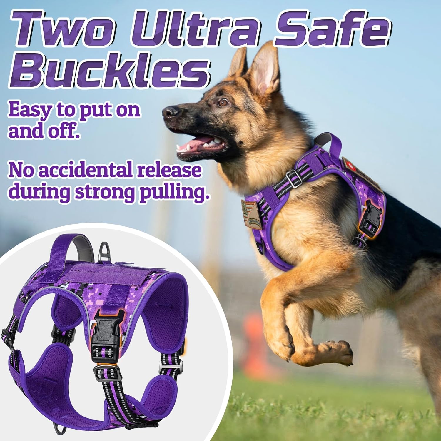 rabbitgoo Tactical Dog Harness for Large Dogs, No Pull Military Service Vest with Handle & Molle, Easy Control for Training Walking, Adjustable Reflective Straps, Purple Camo, L