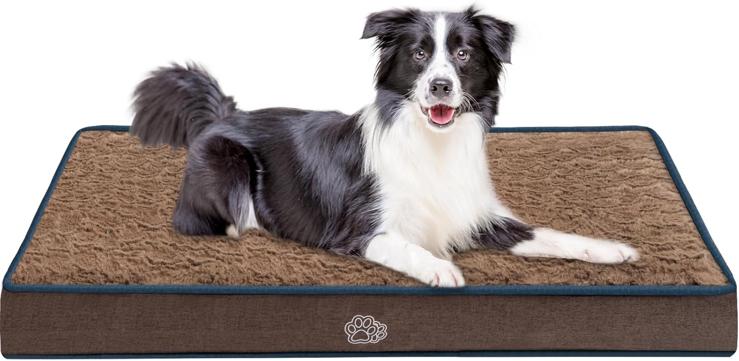 EMPSIGN Dog Bed Mat 35 Inch Reversible Warm & Cool,Washable Dog Crate Bed with Egg Crate Foam Support, Pet Sleeping Mat for Large Medium Small Dogs, Fluffy Kennel Pad(Brown)