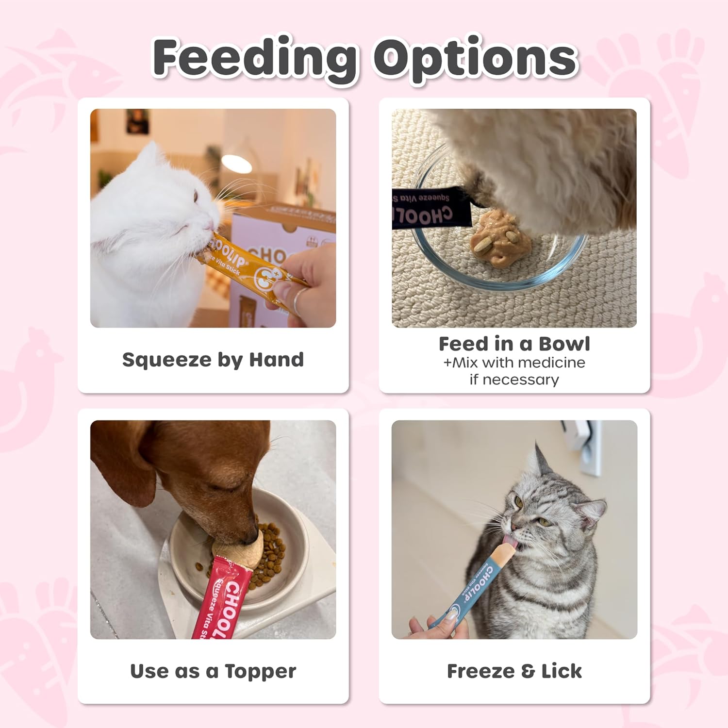 • VITAMIN INFUSED SOFT TREATS: Known as The Vet Who Bakes, Squeeze Vita Sticks were formulated by Korean Veterinarian Dr. Eric, for his cats and dogs. But after becoming popular on his blog, the recipes were upgraded to include health-specific vitamins, then packed into these dog and cat lickable treats