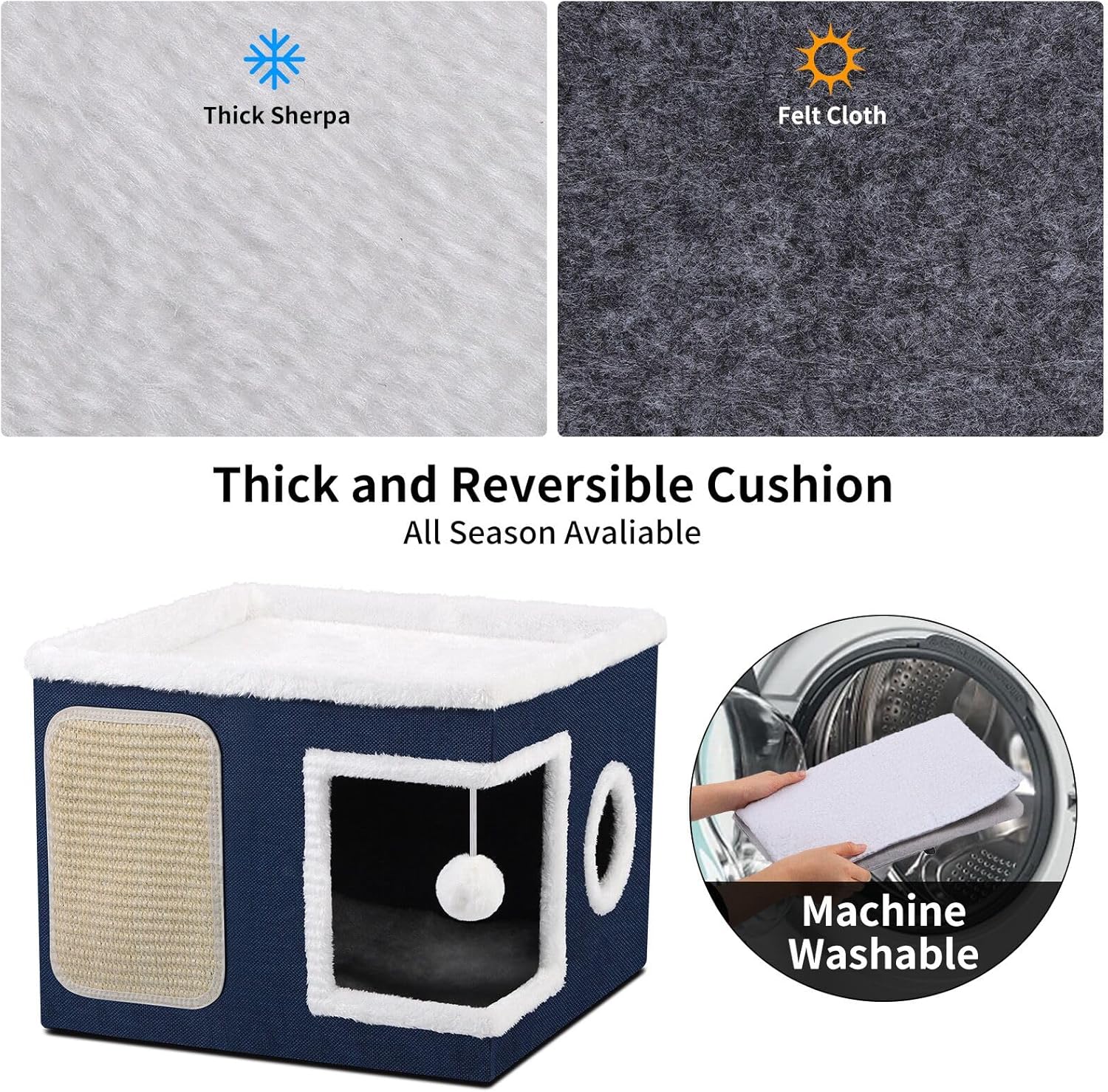 • ๐Ÿ˜บใ€3 in 1 Cat Houseใ€‘: Shikha cat house combines sleeping, playing, and scratching in one, making it the perfect choice for your furry friend. It is made of pet-friendly materials and comes with plush cushions that are not only cute but also incredibly soft and comfortable. And with double-sided cushions, suitable for all seasons.