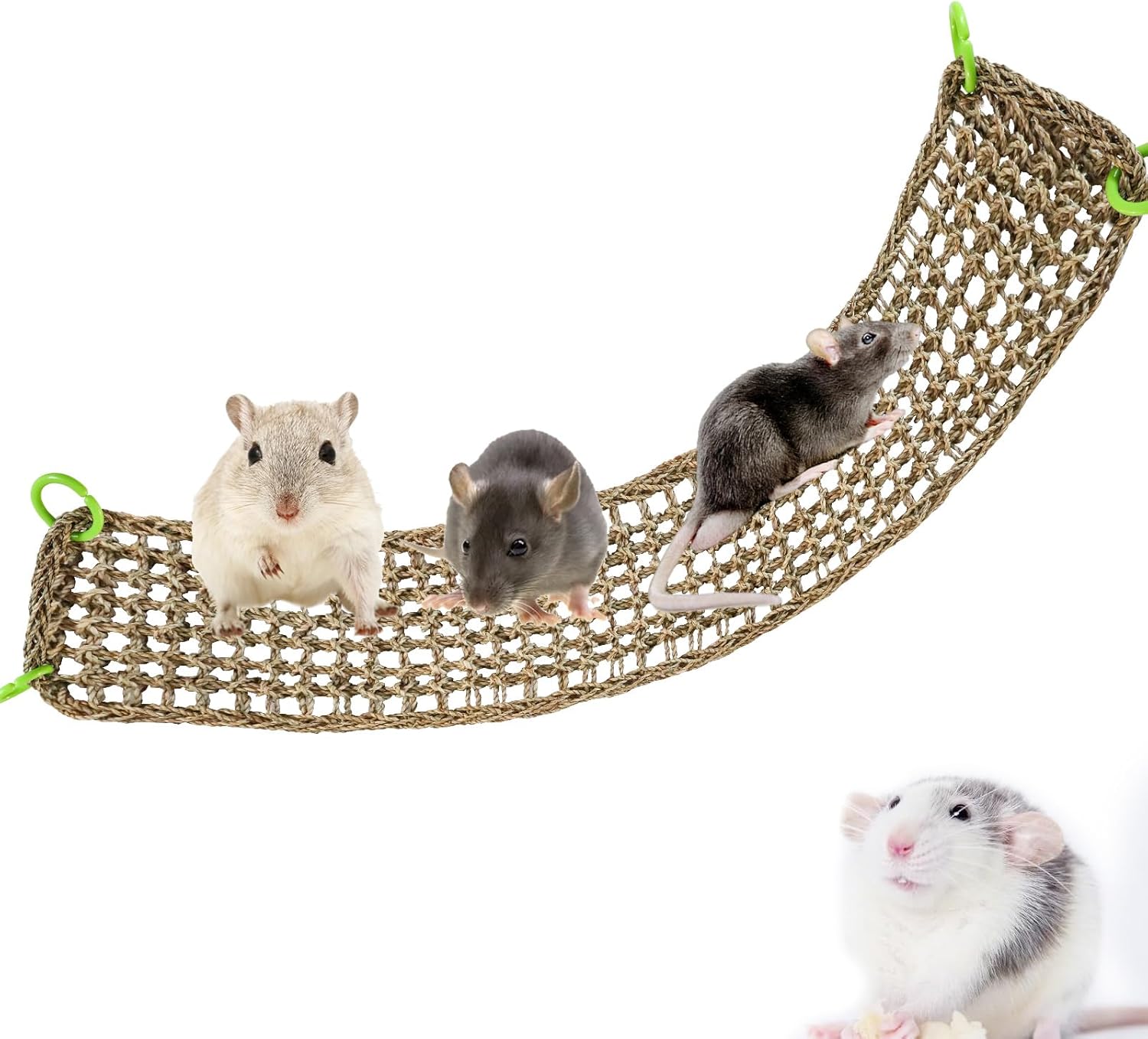 • Cage Accessory: Based on the small animal's seagrass mats hammock, You can add some toys or snacks your pet like, to build their playgrounds, exercise their coordination and balance ability, and enrich their cage life. You can also choose to curl or fold the seaweed pad to build a shelter for small animals.