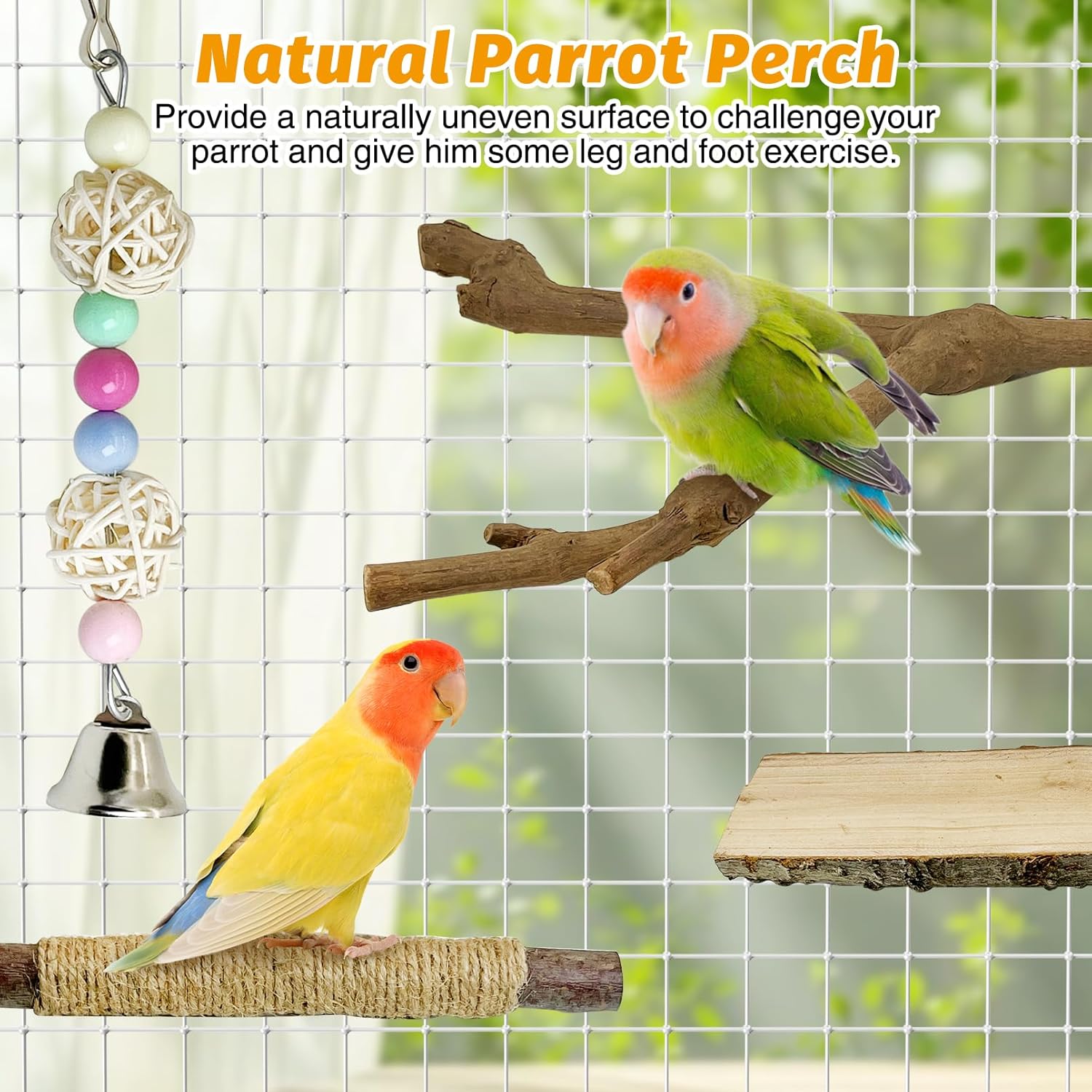 • [Unique Design]: The rough surface of these natural wood perches for birds allows the bird to stand with a steady grip on it, and helps the bird polish its nails to keep its feet healthy, as well as for parrots to chew on