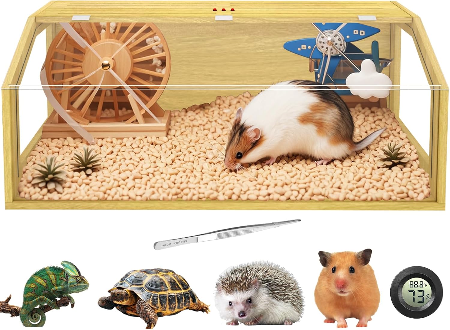 • Cozy Hamster Habitat: FHNI hamster cage is crafted from thick natural wood and thick clear acrylic materials, featuring eccentric bolt assembly for enhanced stability and durability