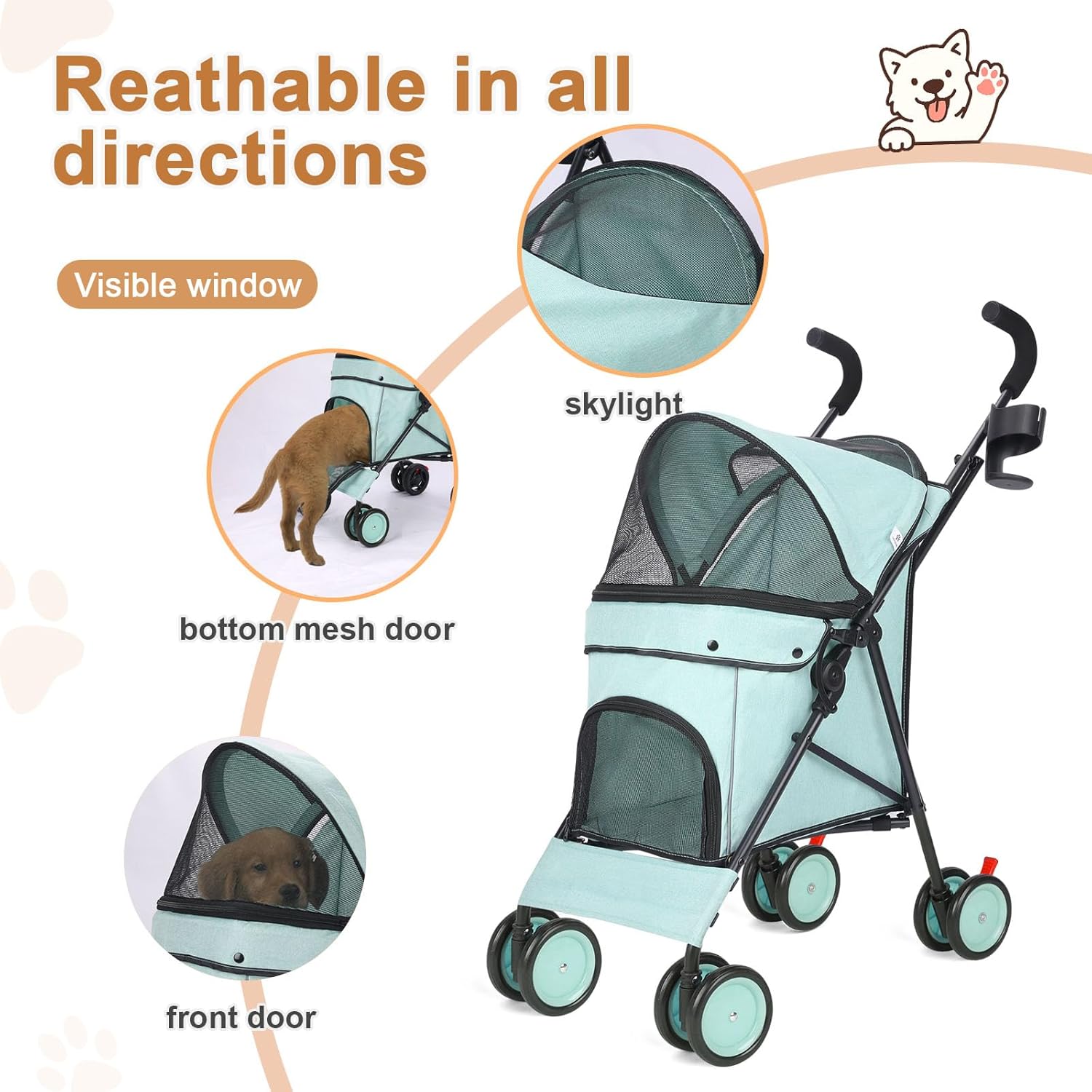 • 🐶 Sturdy construction: Built to accommodate larger pets, this dog stroller for medium dogs 30 lbs is big enough for your puppy stroller needs, ensures an fun experience for you and your furball, if you're using it as a Travel Stroller or a pet cart.