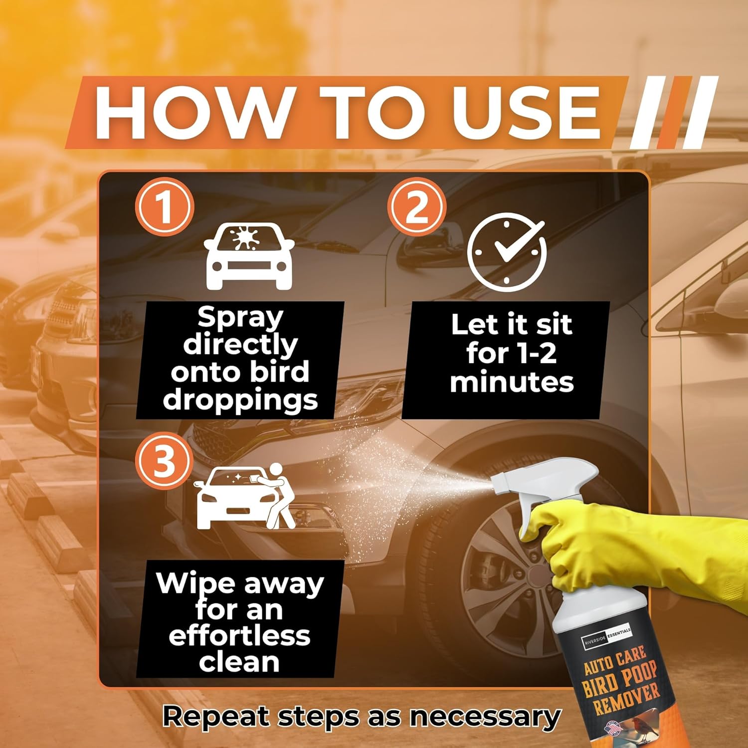 • Powerful Cleaning Formula: This advanced car cleaner is specially designed to tackle stubborn bird droppings and other tough organic stains from your vehicle's exterior. Its powerful formula penetrates deep into the stains, breaking them down for easy removal while protecting your car's finish. Simply spray it on, let it sit and work its magic, and wipe away with ease.