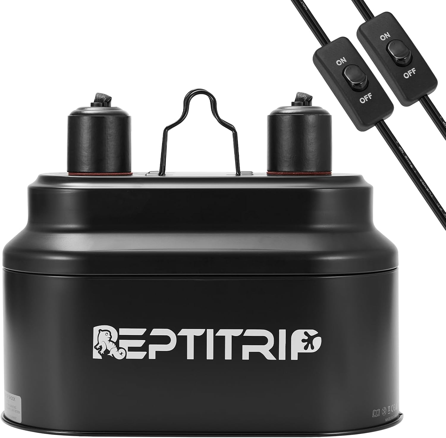 Dual Reptile Light Fixture with Switches, Reptile Heat Lamp Fixture, Reptiles Terrarium UVB Bulb Fixture for Bearded Dragon, Max 160W Each