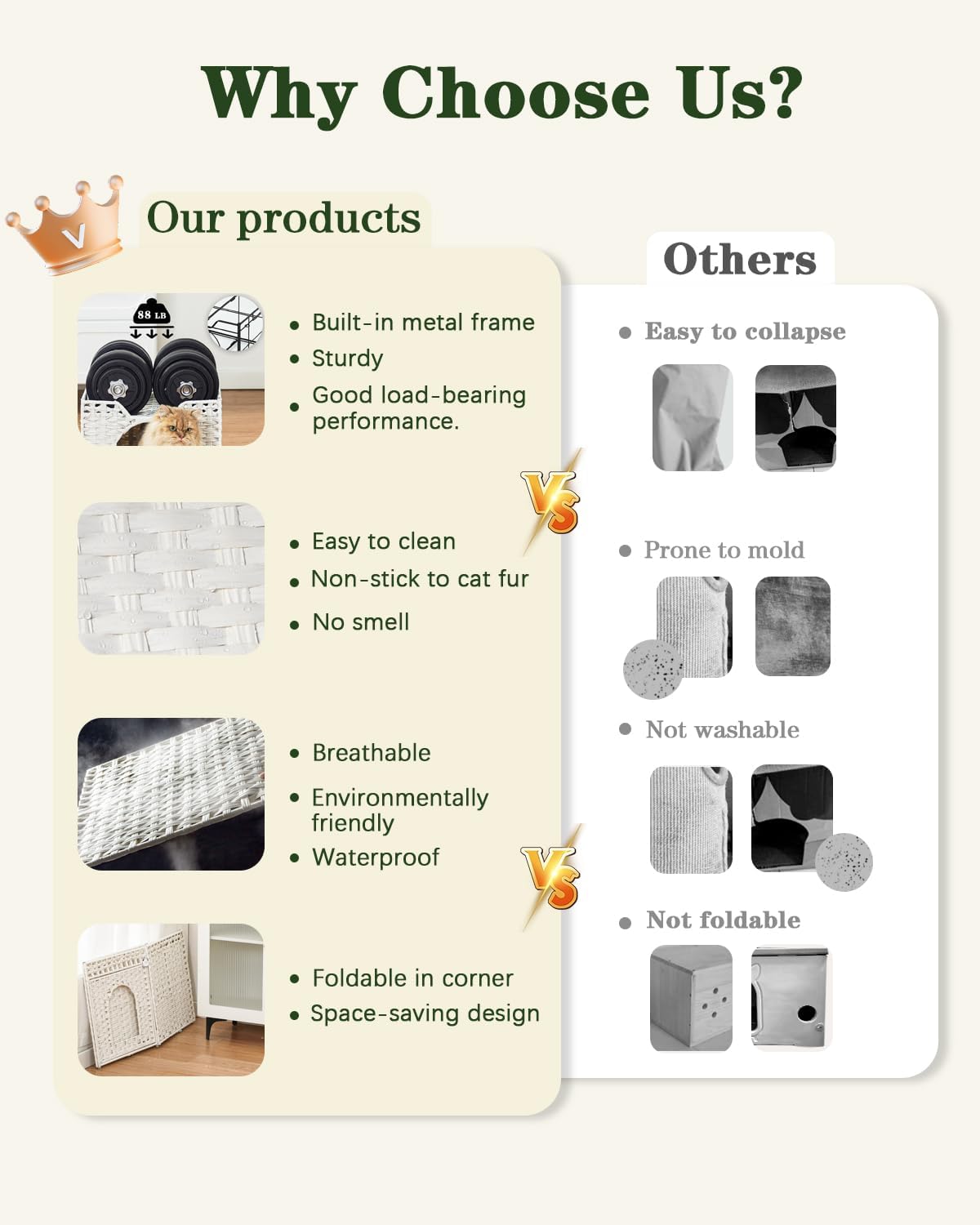 • Easy Care and Stylish: The rattan of the cat cubby is waterproof, simply remove the top level to fully clean the interior of the kitten beds for indoor kittens. Keep cats environment pristine with minimal effort. Modern style fits anywhere in the home