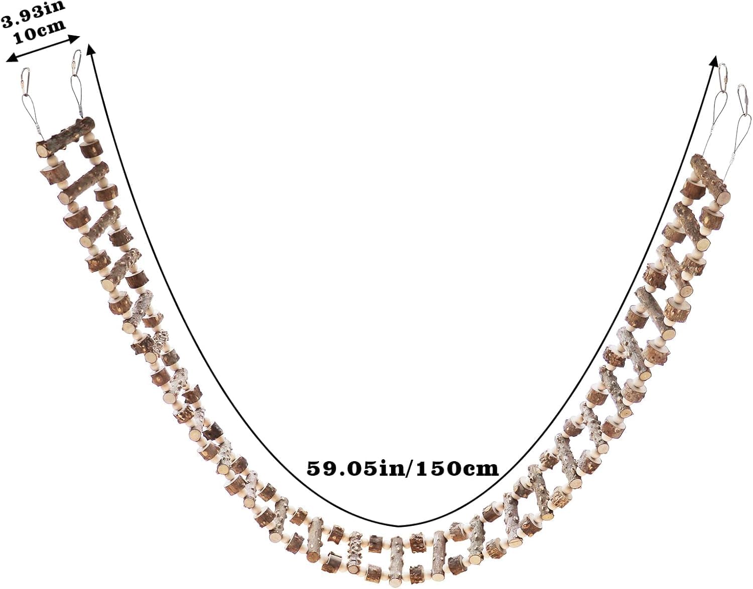 • Easy to Install: The total length of this bird ladder toy is about 59"/150 cm, and the total is about 0.45 pounds. There are two metal buckles at each end, which can be easily and safely installed anywhere. Our small animal bending bridge is not only suitable for all kinds of small animal cage accessories but also suitable for hanging in the garden woods for birds, squirrels, and other small animals to play and stand.