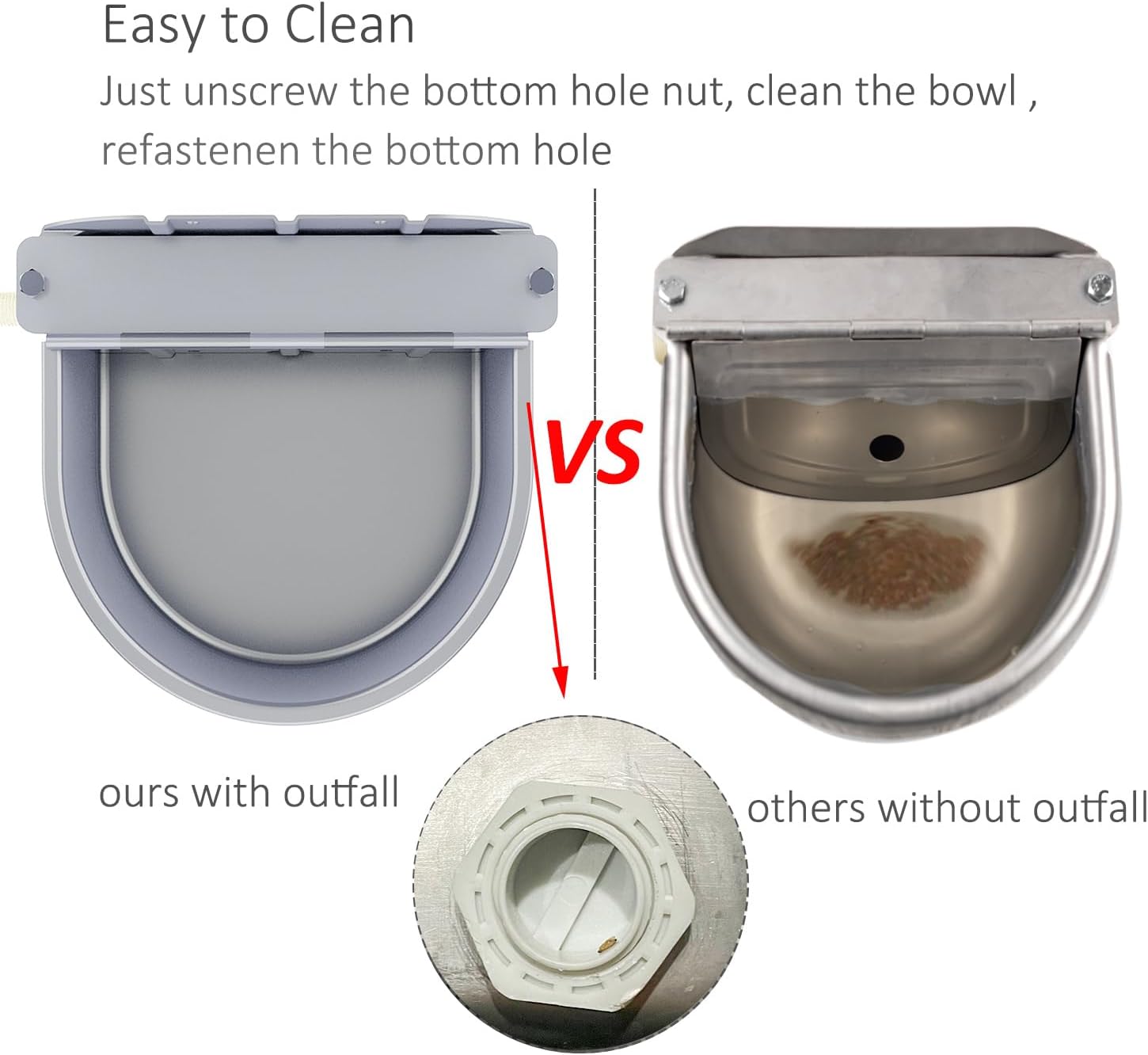 • The easy-to-clean pet water dispenser has an outlet hole. The water feeder can be conveniently cleaned by removing the drain plug.