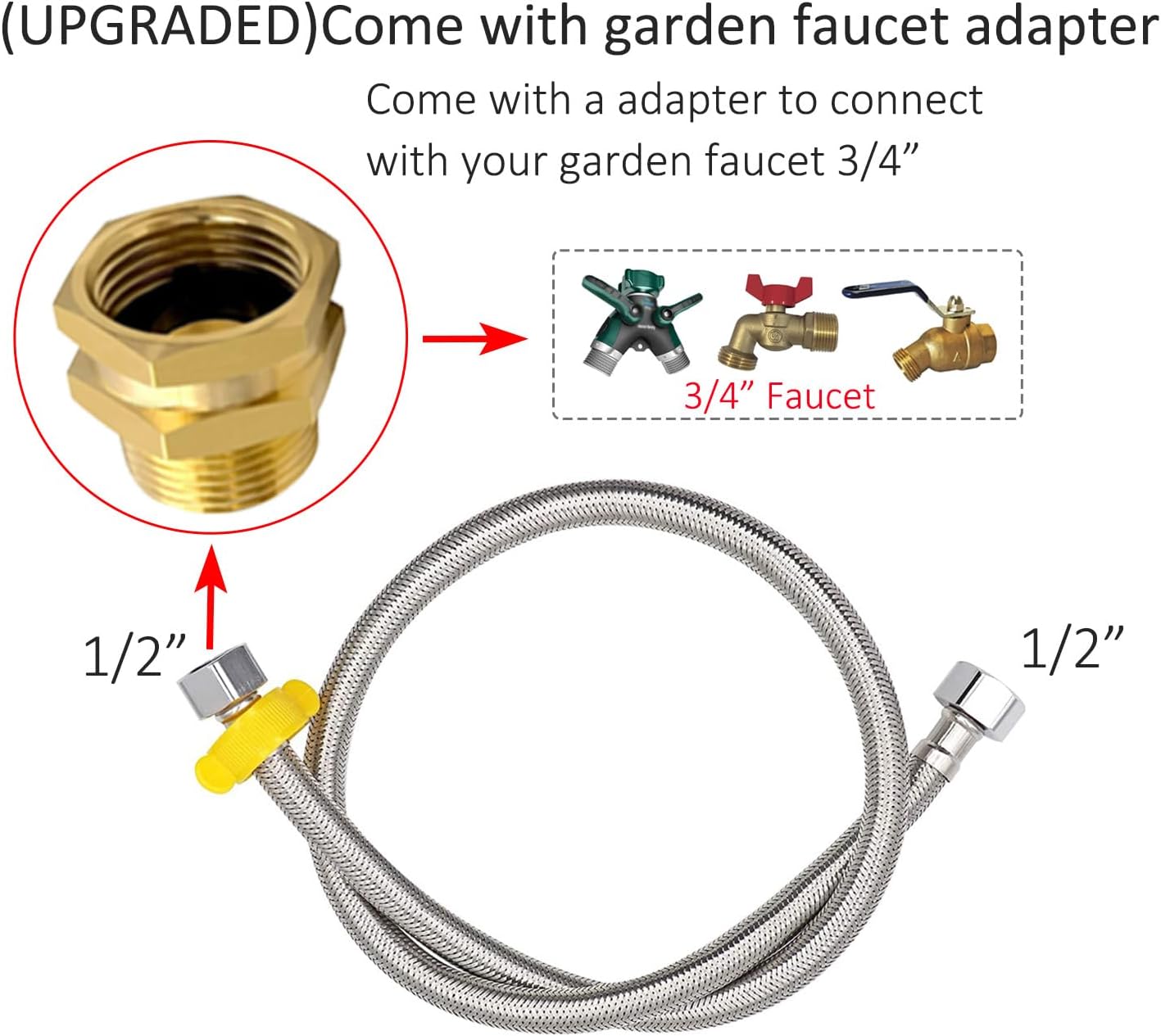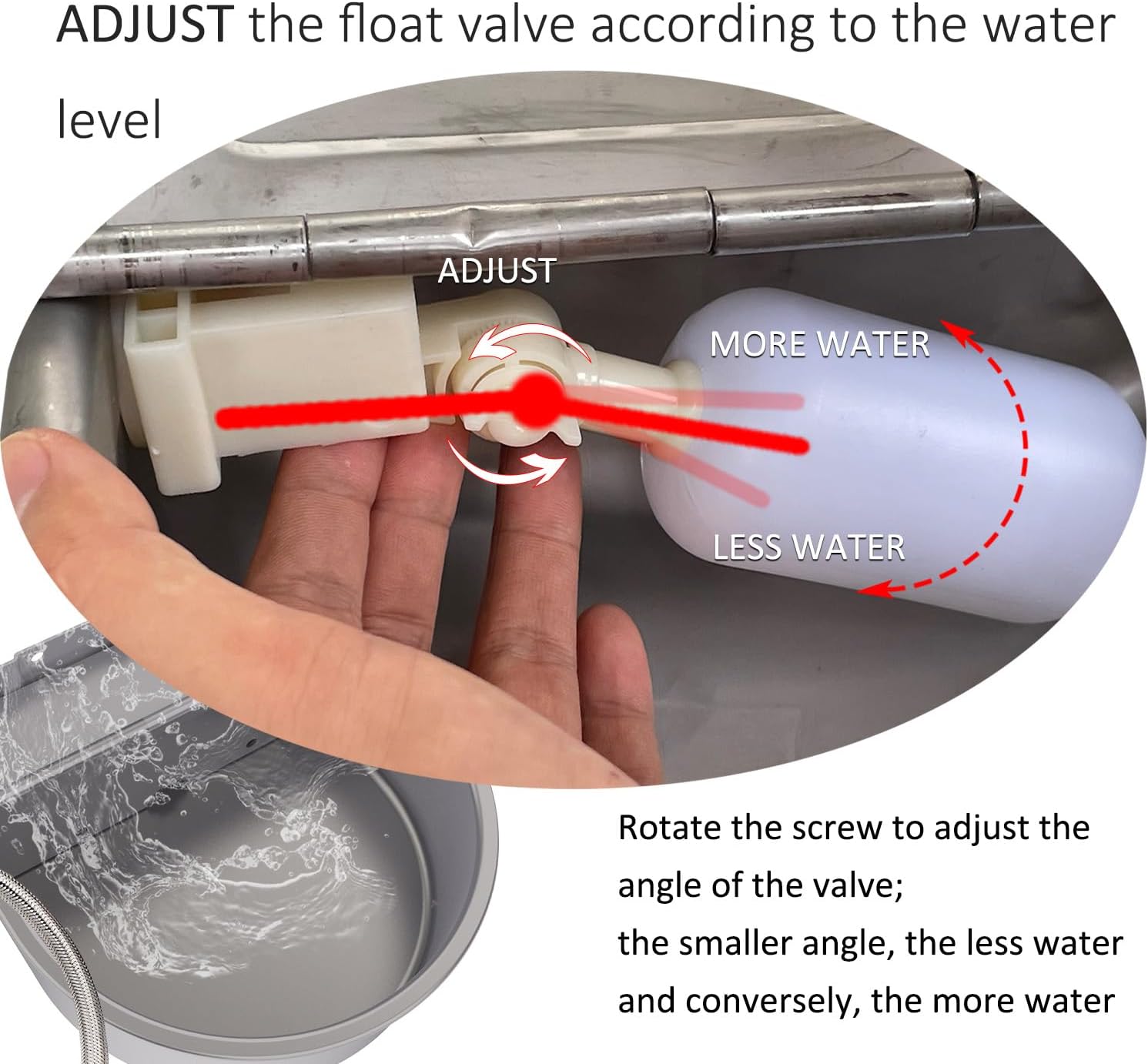 • Back up water float valves, a 3/4โ€ garden faucet adapter and water pipe is included.