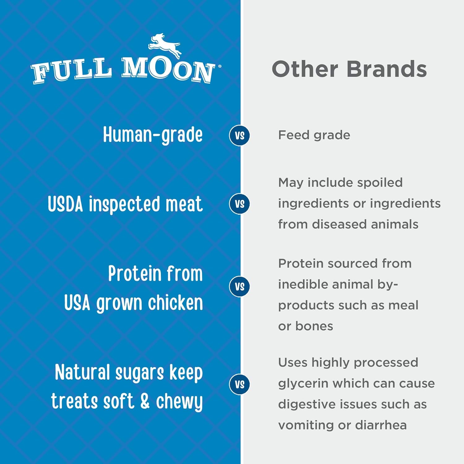 • U.S.-GROWN CHICKEN: Full Moon treats are proudly made in the United States using regionally sourced ingredients, including USDA approved, antibiotic-free chicken.