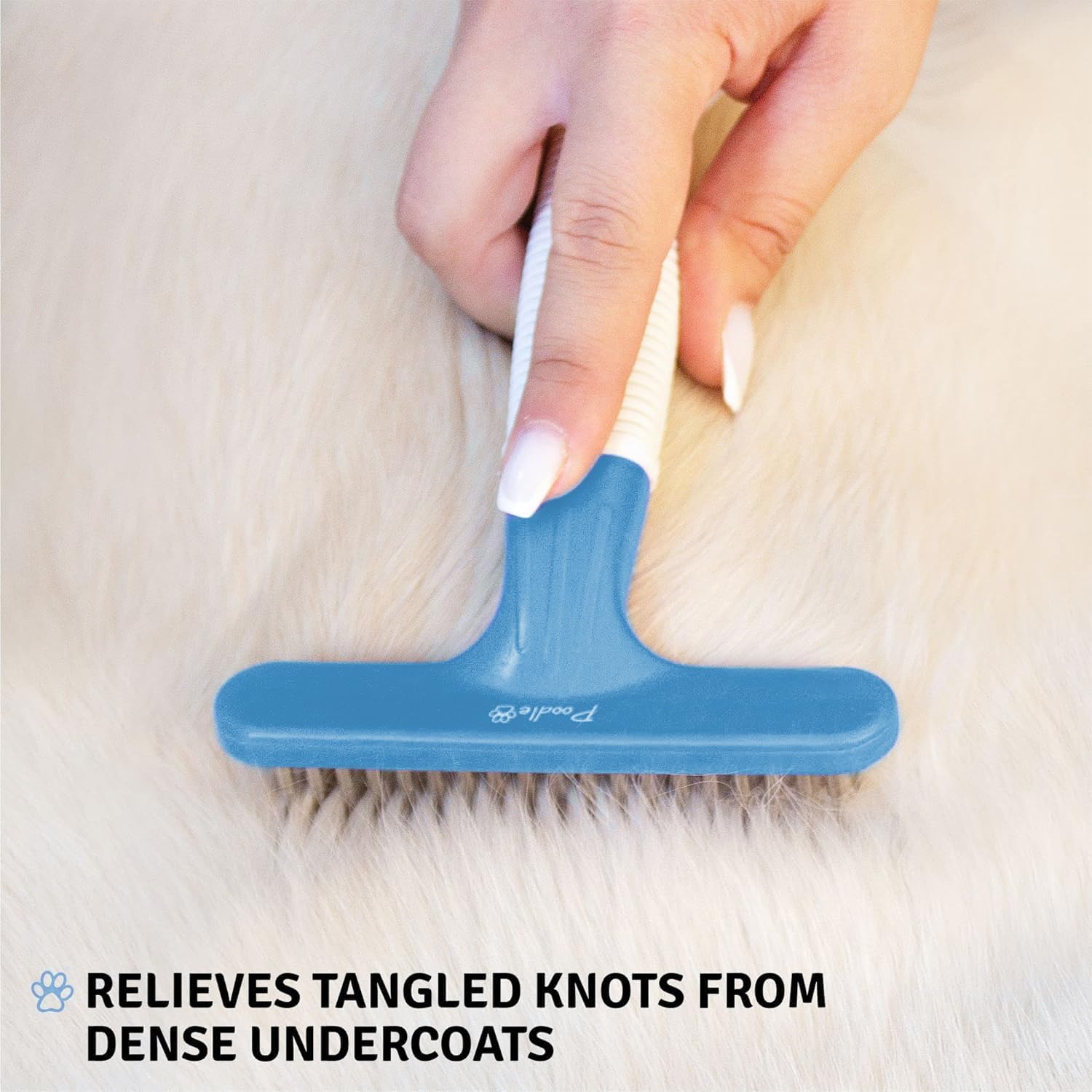 POODLIE Poodle Pet Dog Grooming Rake | Dematting Tool with Stainless Steel Shedding Comb for Pets | 2 Rows of Pins Gently Remove Loose or Tangled Hair from Undercoat (Blue)