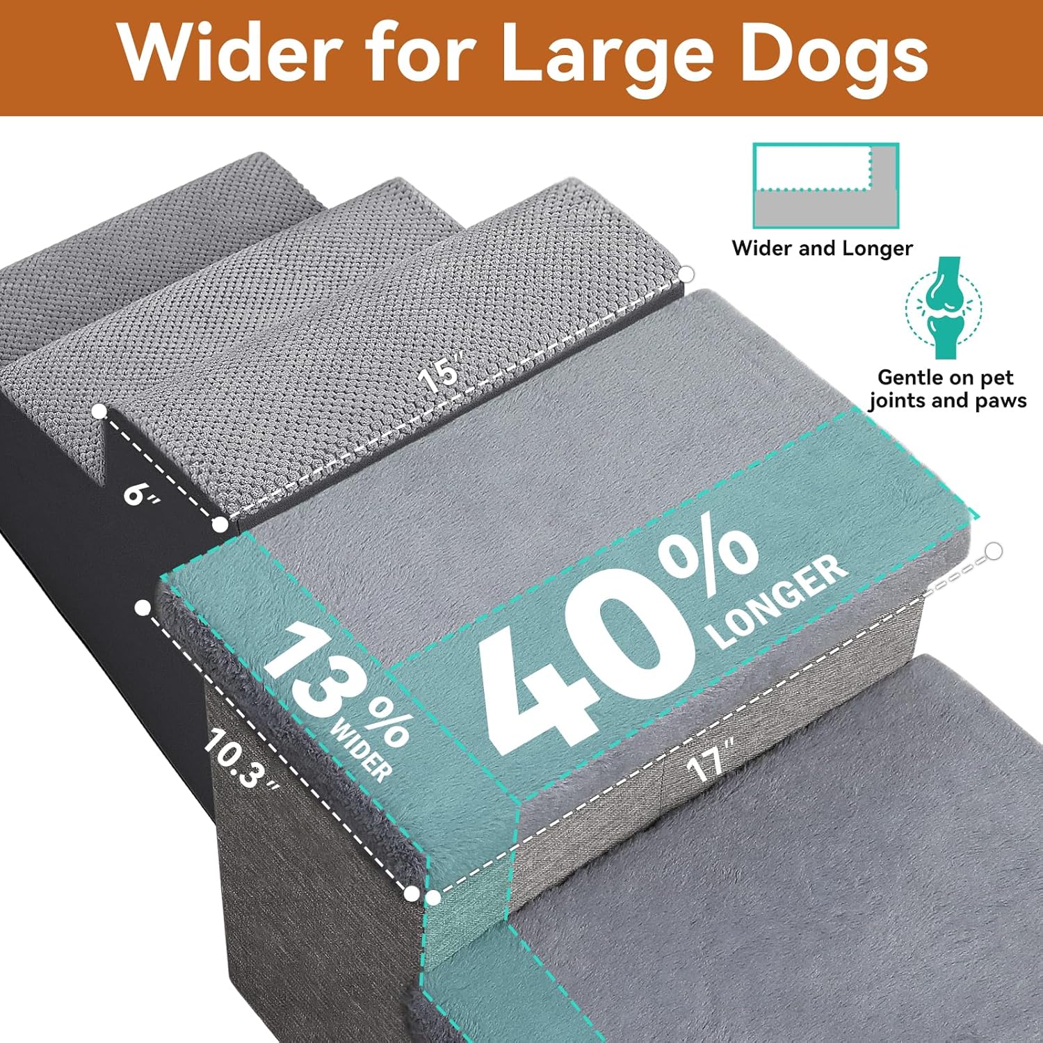 - HIGHER AND WIDER STEPS & HOME DECOR: Our extra-large Stairs size 31"D x17"W x17.7"H. Zerbuger sturdy dog stairs are perfect for helping your furry friends reach beds and sofas easily indoors, or climb to vehicles or SUV outdoors while traveling. Besides, its modern look can be an elegant dรฉcor in your house.