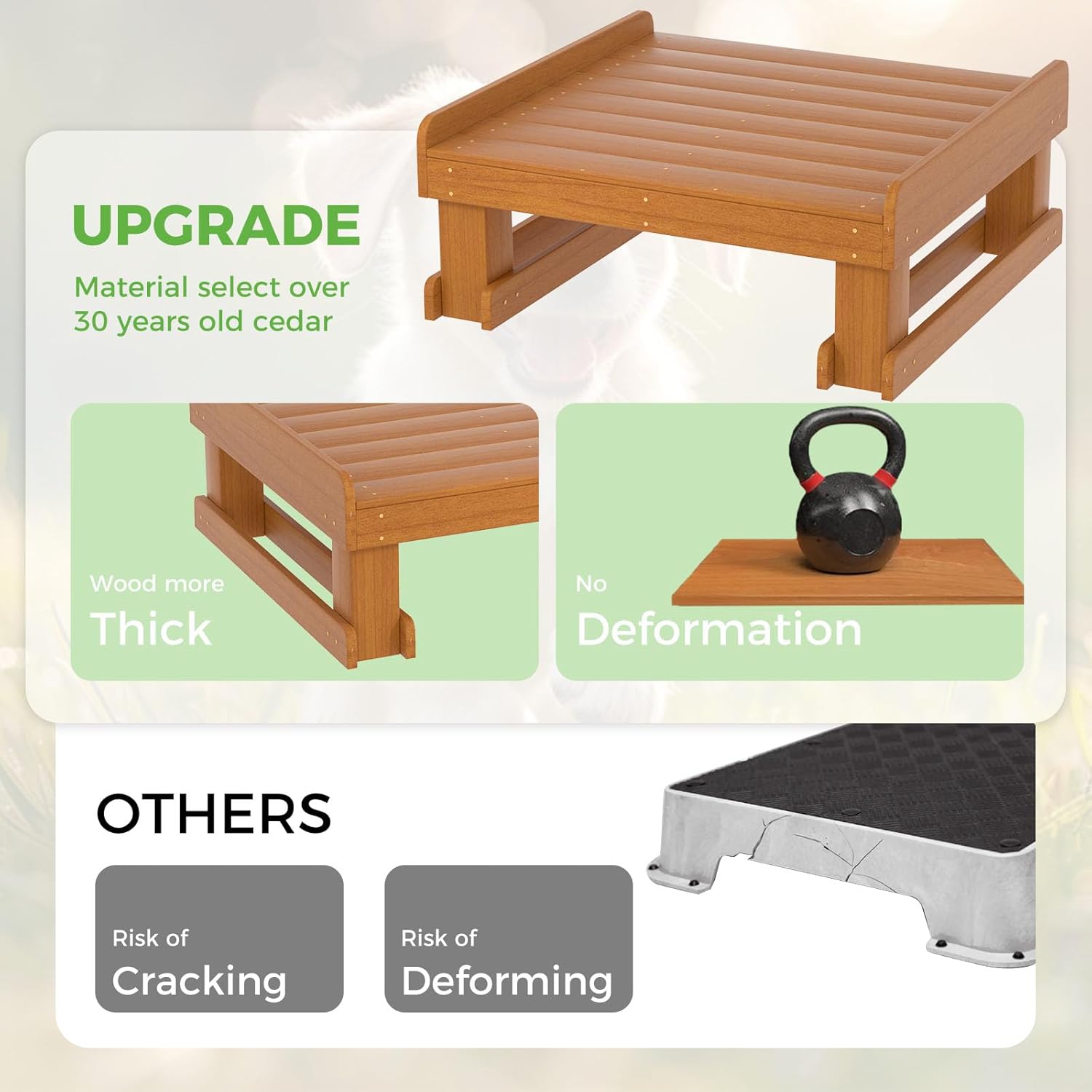 • Wood Materials: The base of wooden platform is a strong fir wood with our waterproof coating surface for sure pet footing. Itโ€™s UV stabilized and washable for limitless outdoor use