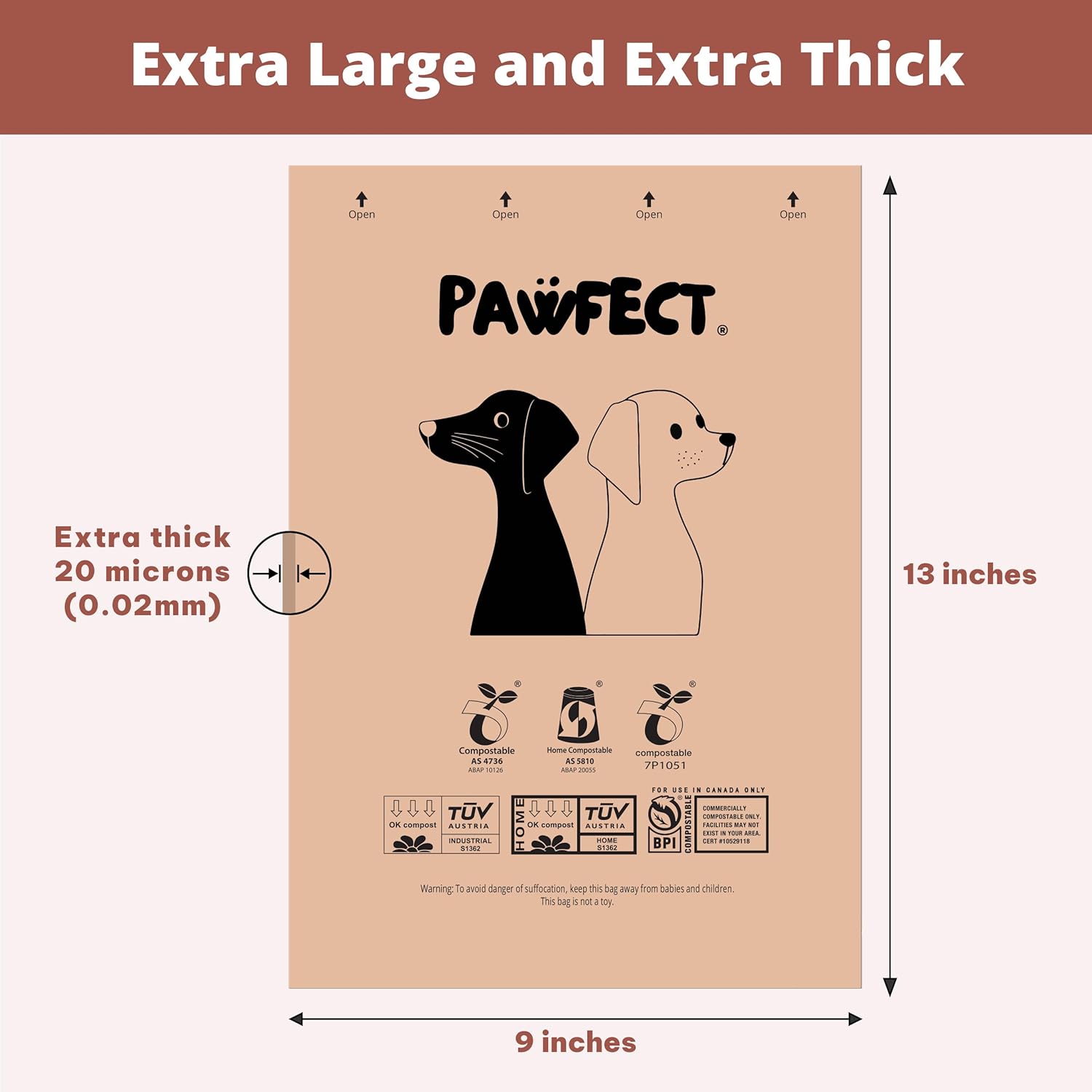 Pawfect Dog Poop Bags Rolls - Biodegradable Doggie Bags, Compostable Dog Waste Bags, BPI Certified Pet Waste Bags, Unscented, Large, Puppy Poo, Earth Friendly, Bolsas de Basura (240 counts)