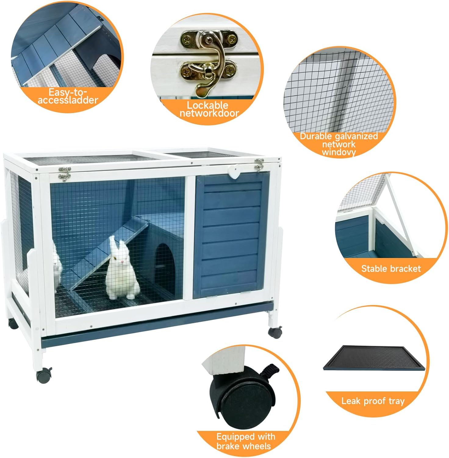 • Easy Cleaning: Bunny hutch indoor has a waste tray constructs the bottom of the entire pet box. It can be pulled out for regular cleaning. Lined with premium plastic layer, the tray ensures no leakage in long term use