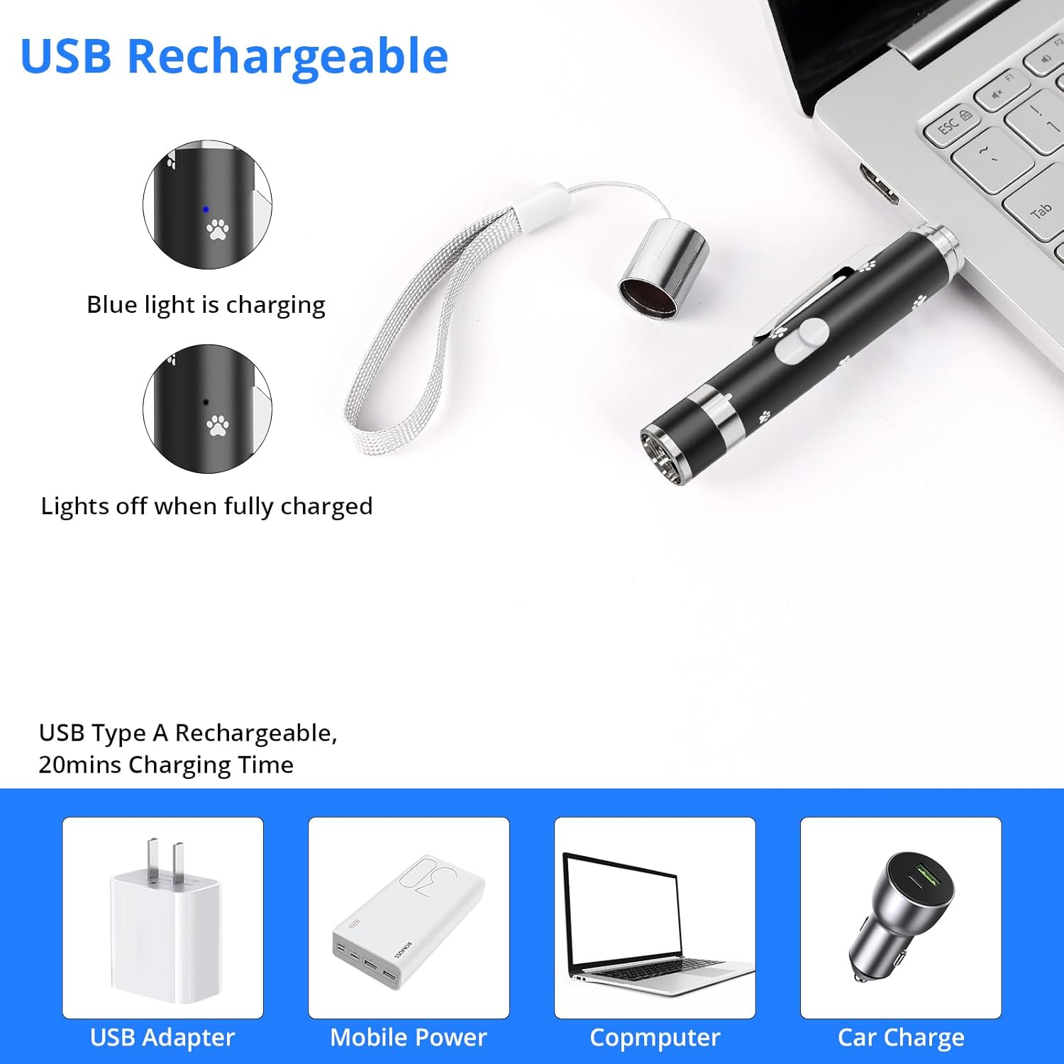 • 【USB Rechargeable Charging】This new interactive cat toy features a built-in USB port. Simply remove the back cover and plug it into any USB charger—no need for disposable batteries, making it more eco-friendly. Charge it using power banks, adapters, computers, or even your car. It's convenient and fully charges in about 20 mins.
