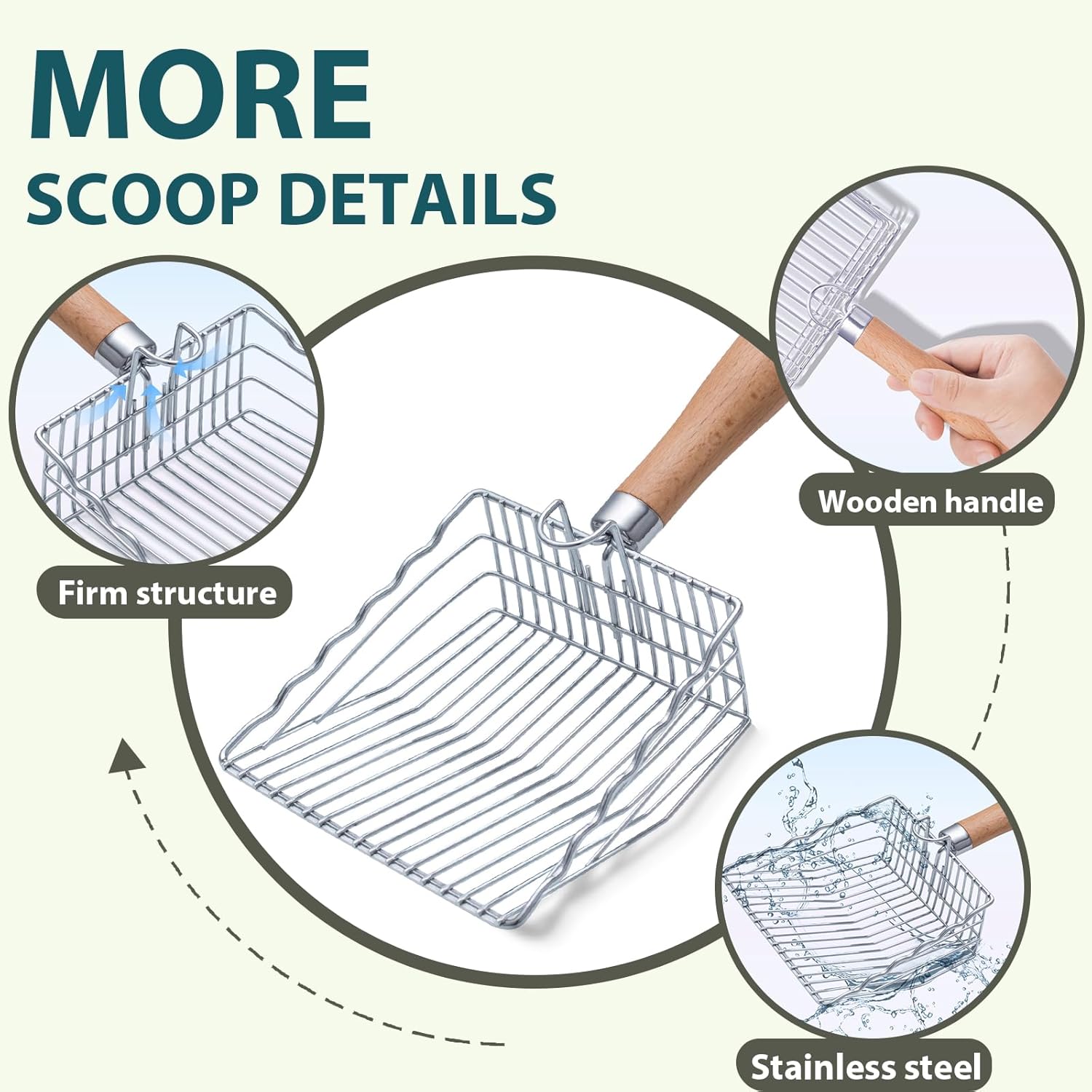• 【High Quality Materials】: Our cat litter scoop is made of high quality corrosion-resistant stainless steel material, the wooden handle is more comfortable to hold than plastic handle and lasts longer, reducing the cost of frequent replacement