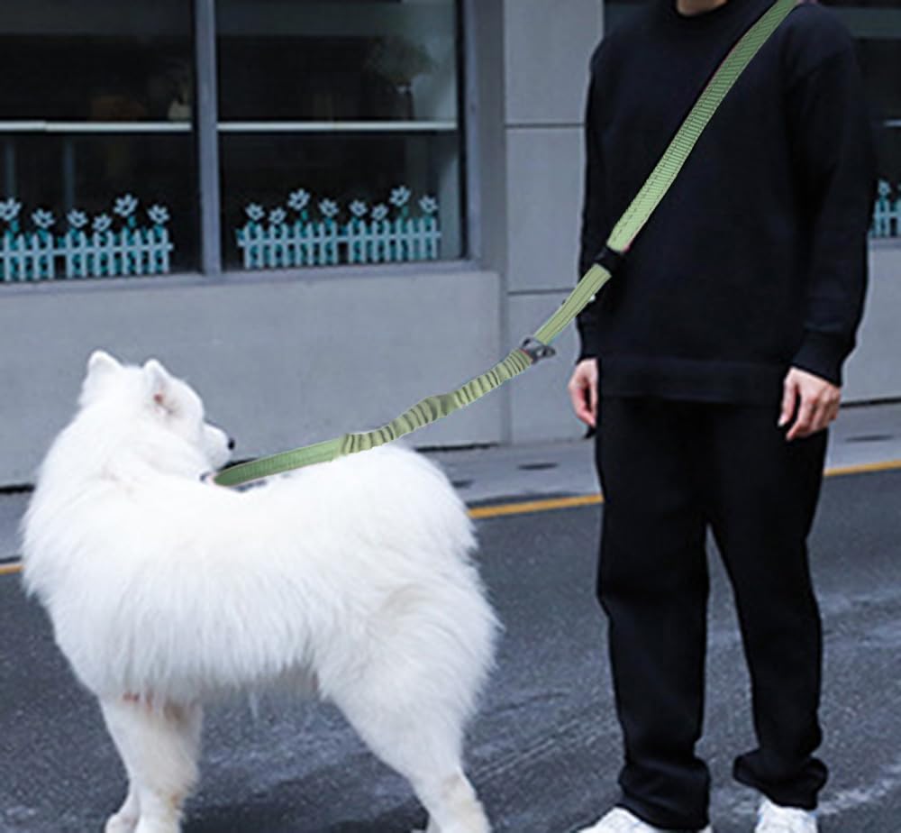 • Bungee Dog Leash: This heavy duty bungee dog leash is perfect for active dogs. Bungees design help to absorb shock from dogs, reduce back strain and the risk of getting hurt. Our waist leash is 57 inch and extends up to 90 inch, your dog can comfortably run in front of you. And the dog leashes for large dogs heavy duty with short handle, you can use it pull the dog back to safety fastly in case of emergency