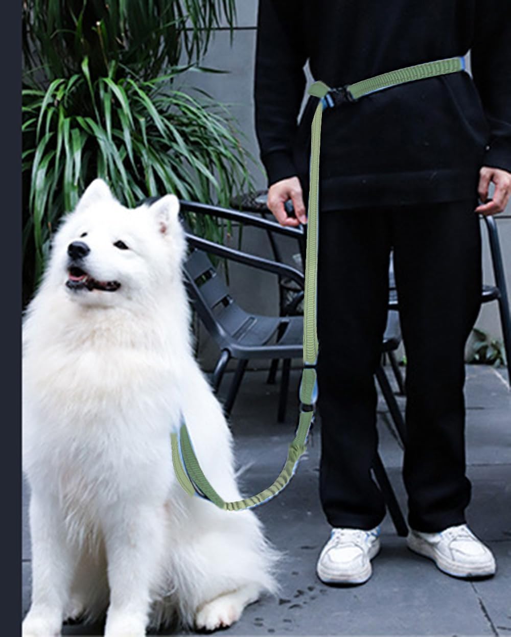 Hands Free Dog Leash for Large Medium Dogs Heavy Duty Bungee Reflective Adjustable Waist Leashes for Walking Running with Car Buckle 4-6FT (Green-1)