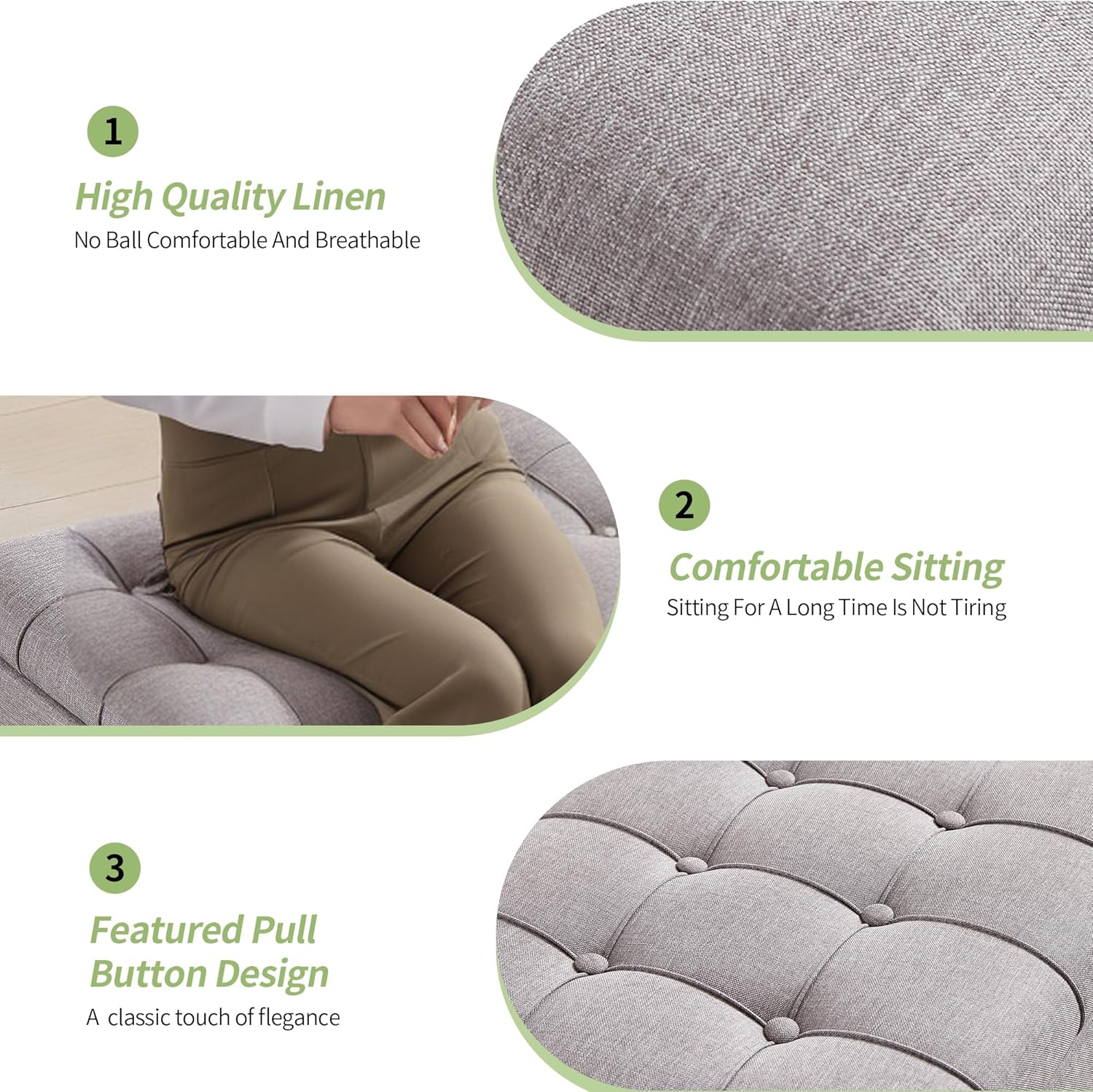 • ใ€ Widely used ใ€‘ This bench ottoman is usually put at the end of bed in bedroom,as a end bed bench, It can be used for sitting or for placing feet while lying in bed.The bed bench can also be used as a footstool, fashion seat, shoe stool, window bench, or pet bed. Light weight, but firm and comfy, it can be moved easily to living room, bedroom, office, fashion closet, kid's playroom, den, studio apartment.Color that is elegent and classic, it adds a visual interest in your room