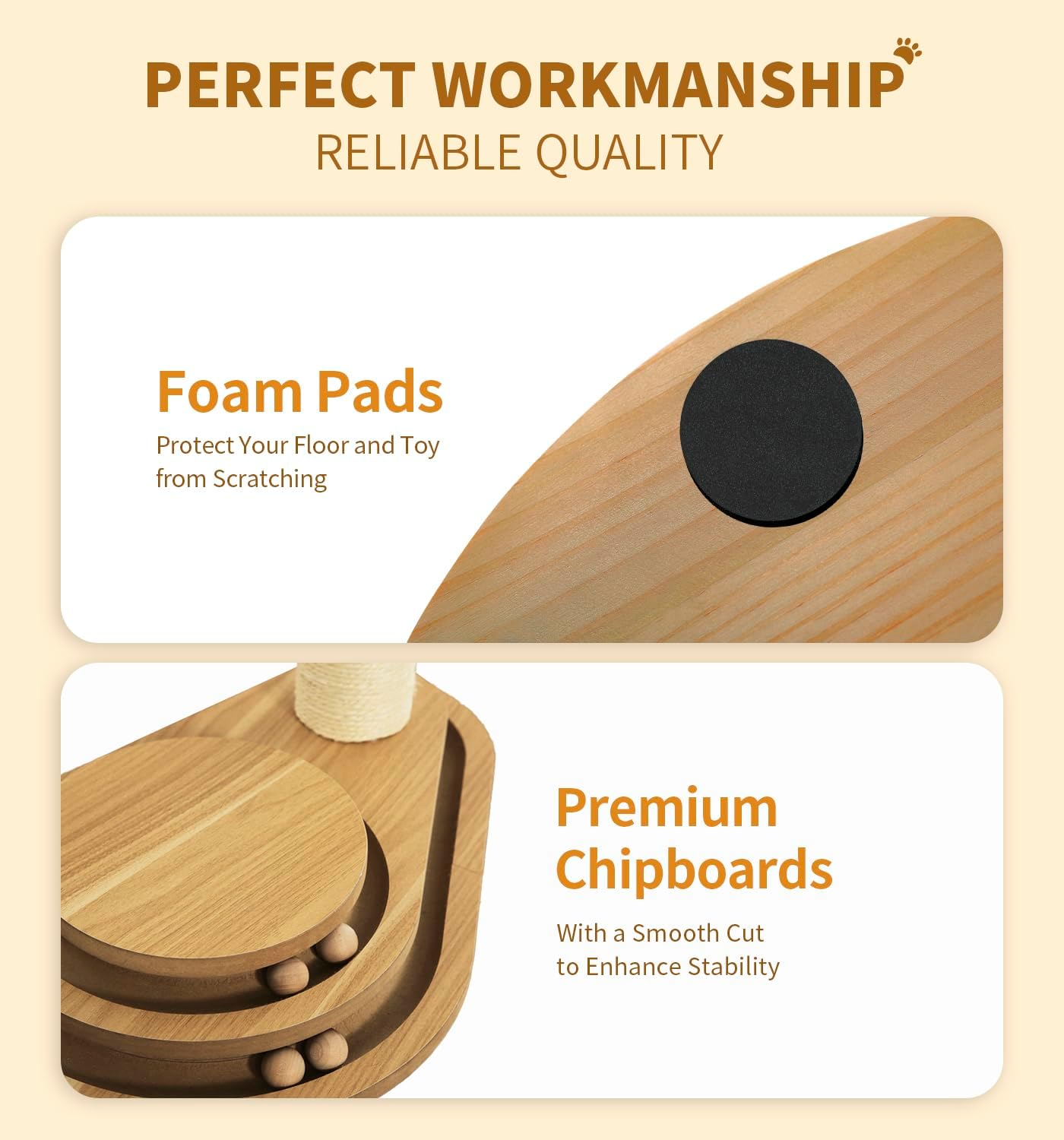 • 【3-Tier Cat Toy Board】:The cat scratchers pole is designed with 3 levels of tracks and 4 moving balls to attract kitty’s attention! Your cat will adore batting, swatting, and pouncing the playing balls as they entertain their natural instincts to hunt.