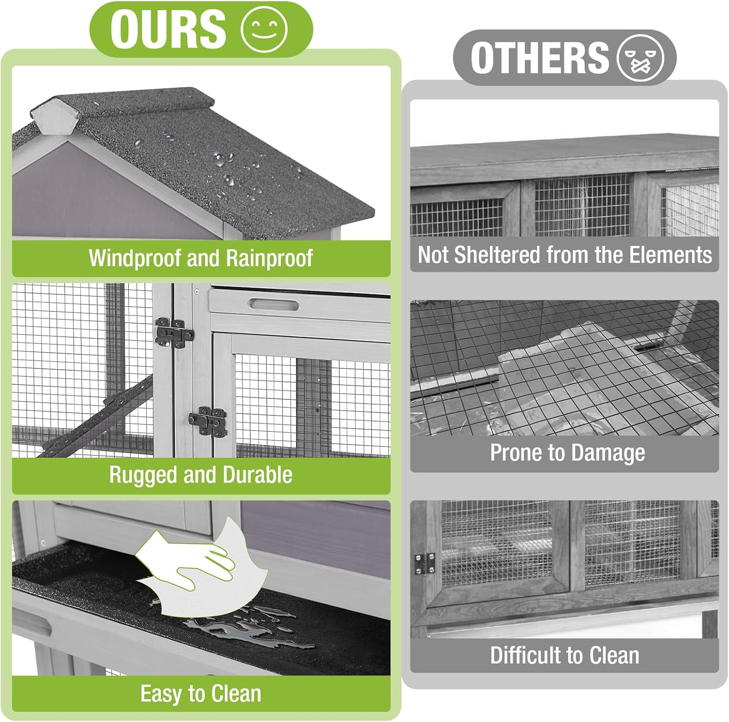 • EASY TO CLEAN: The rabbit hutch features a deeper, waterproof pull-out tray that won't leak and is easy to clean