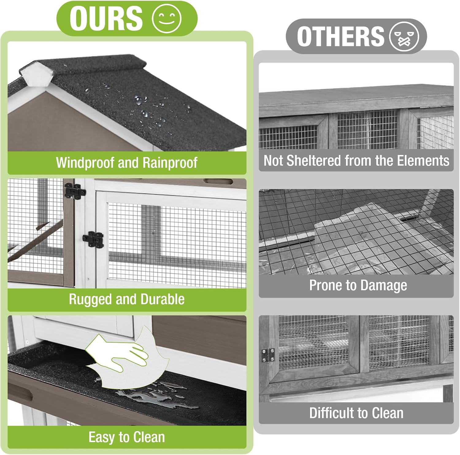 • EXTRA SPACIOUS SPACE: 51.6“ L x 25.2” W x 36.2” H. Provides more room for 1-2 rabbits, ferrets, chickens and other small animals. Upper area can be used as an elevated nesting box for storing and collecting eggs