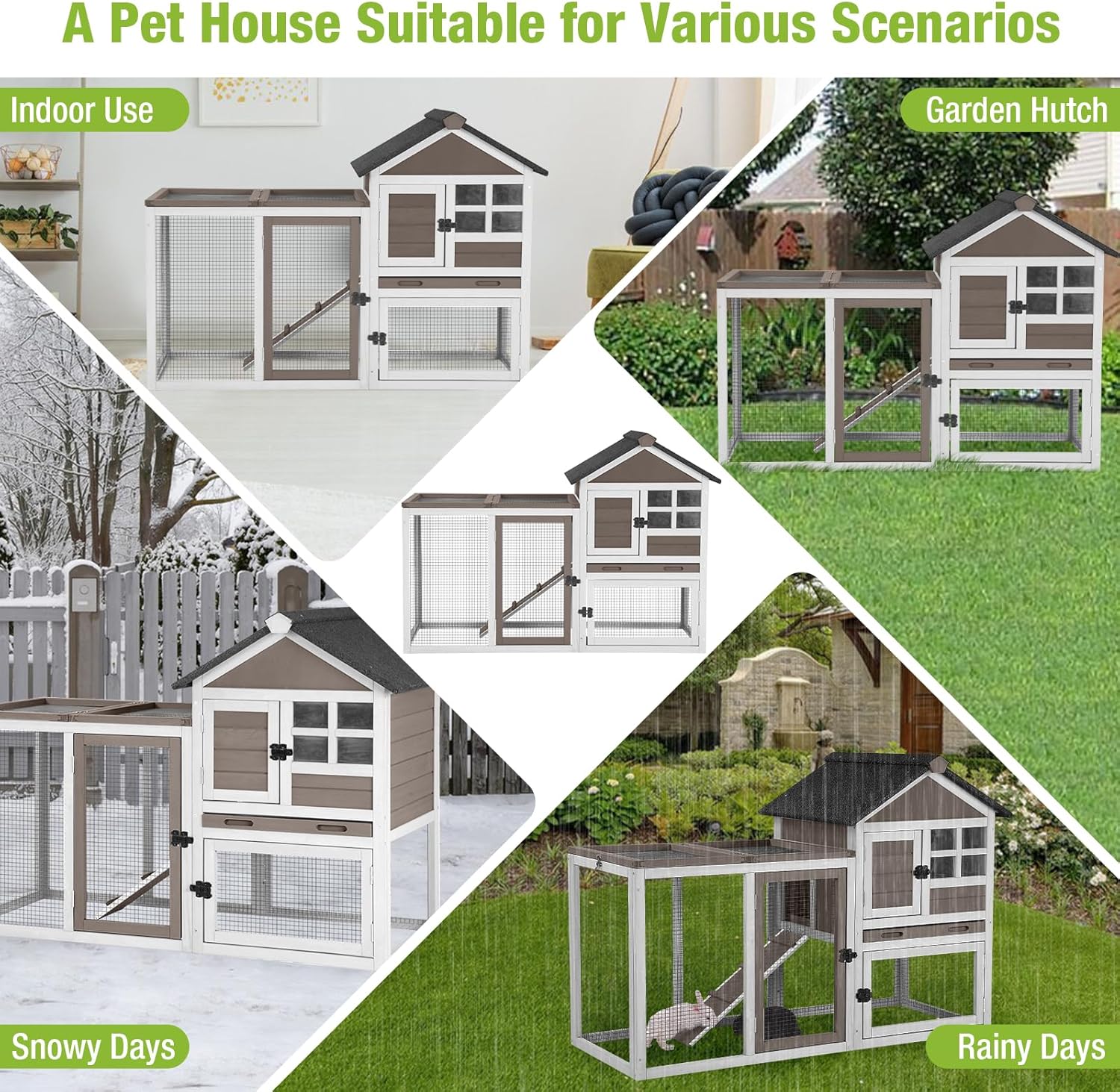 • EASY TO CLEAN: The rabbit hutch features a deeper, waterproof pull-out tray that won't leak and is easy to clean