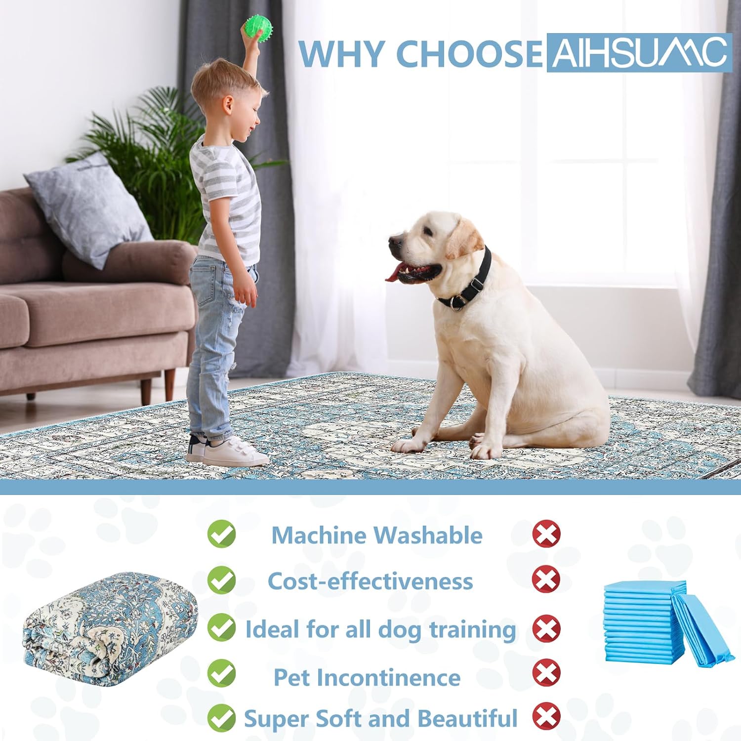 Extra Large Washable Pee Pads for Dogs (72"x72"), Upgrade Reusable Puppy Pads with Non-Slip Rug Pad, Super Thickening Absorbent Leakproof Dog Traning Pads Whelping Pad for Dogs, Doggie