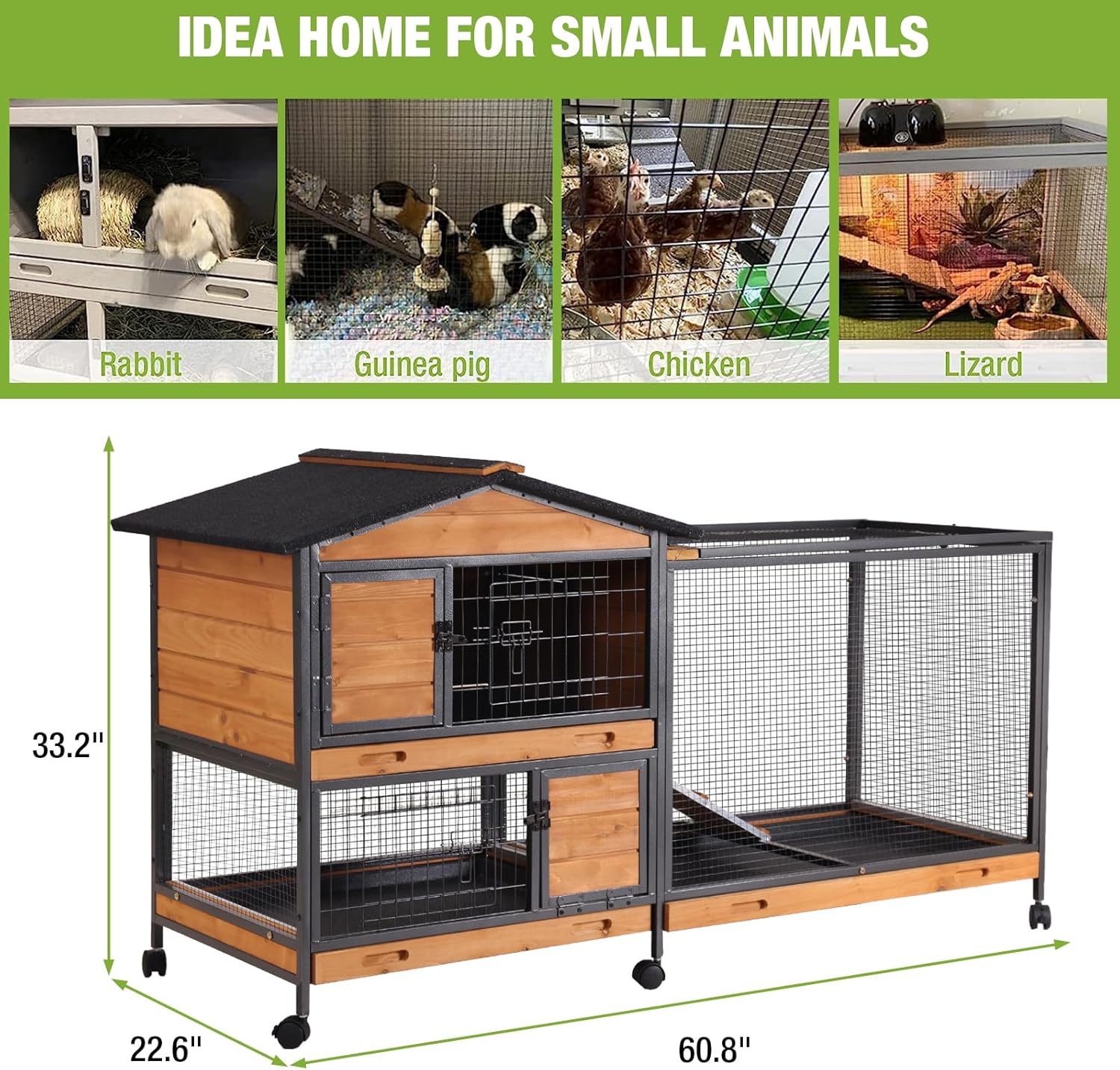 • Ample Space and Accessibility: Equipped with six opening doors and three separate compartments, this hutch offers ample space for your small animals to move around freely. It ensures that each pet has its own space to play and rest