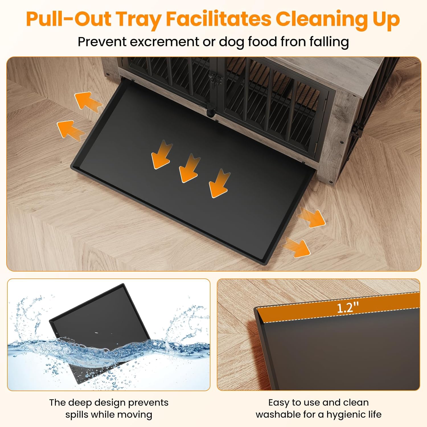 • 【Versatile Tray Usage】Put the tray under the bottom mesh to catch crumbs, fur, and dirt, keeping your dog's place clean without dirtying your floor, maintaining a tidy living space for your pet, or place the tray above the mesh to offer your dog a flat, comfortable surface—it's up to you