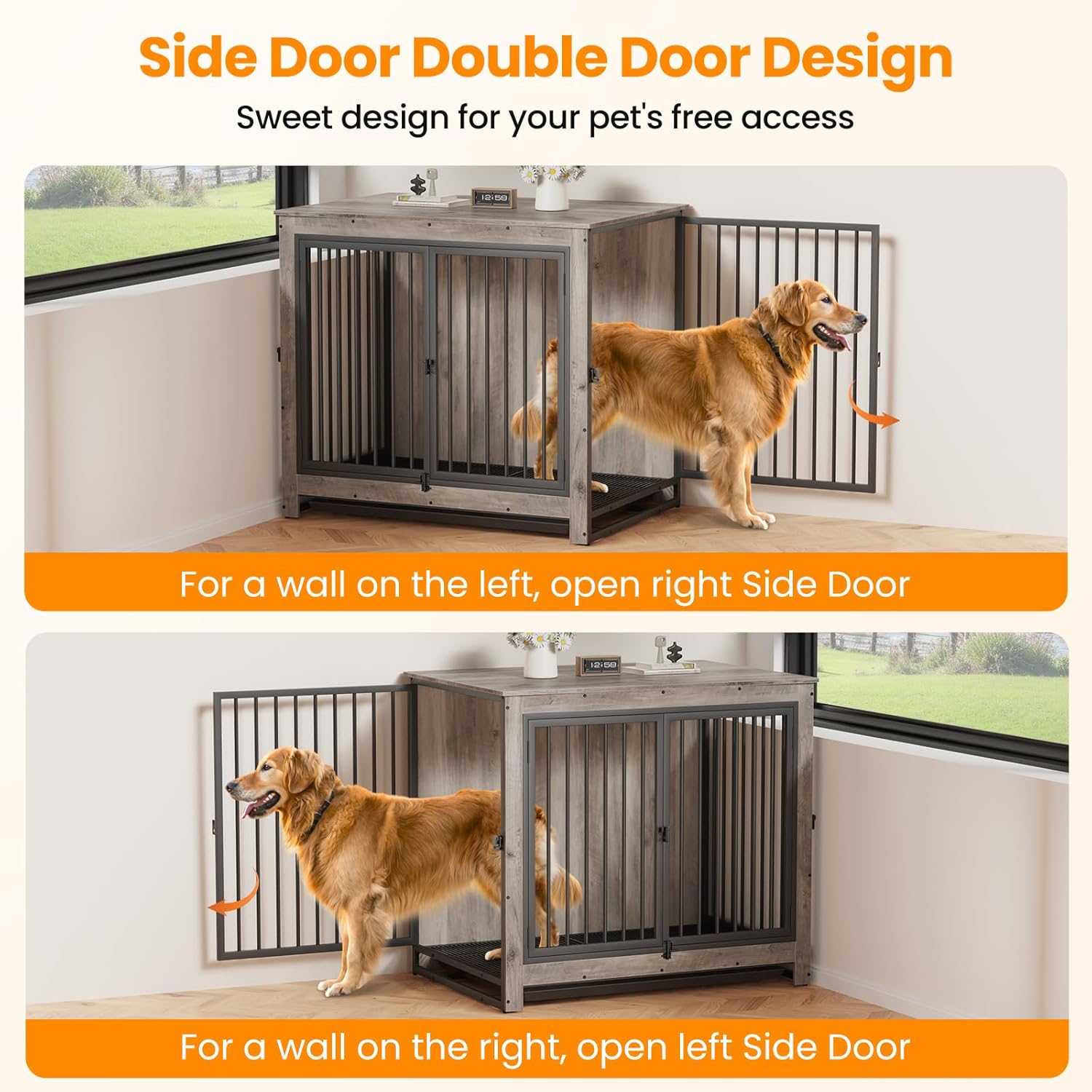 • 🐶【Double Side Door Design】This furniture-style dog kennel indoor has front and two side openings for access, both the left side door and the right side door can be opened to fit various spaces, definitely an ideal crate for your home