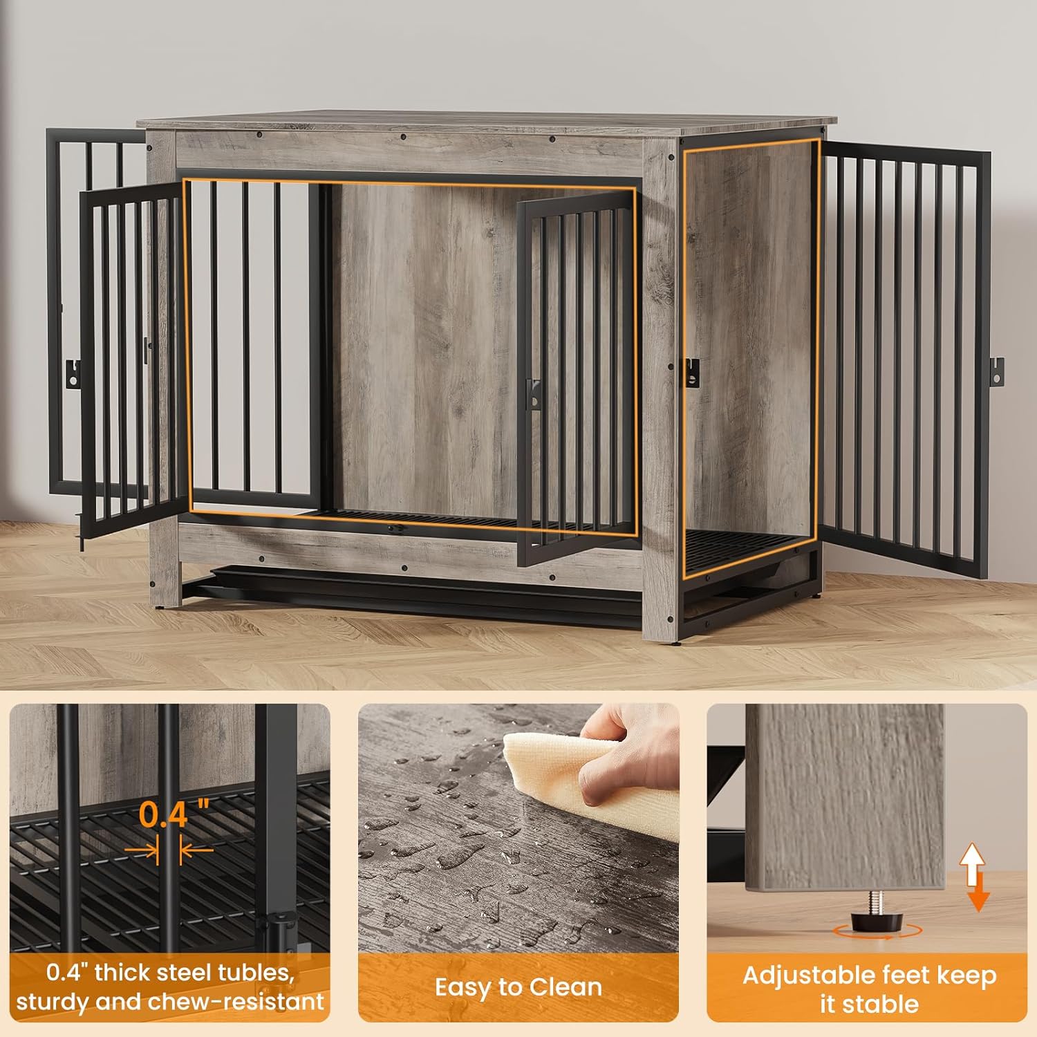• 🐶【Multi-functional】 This pet crate furniture can be used as pet crate, also as a side table, end table or night stand, and easily blends in with your home decor and elevates your space—this dog crate meets everyone’s need, from your dog to you and your home