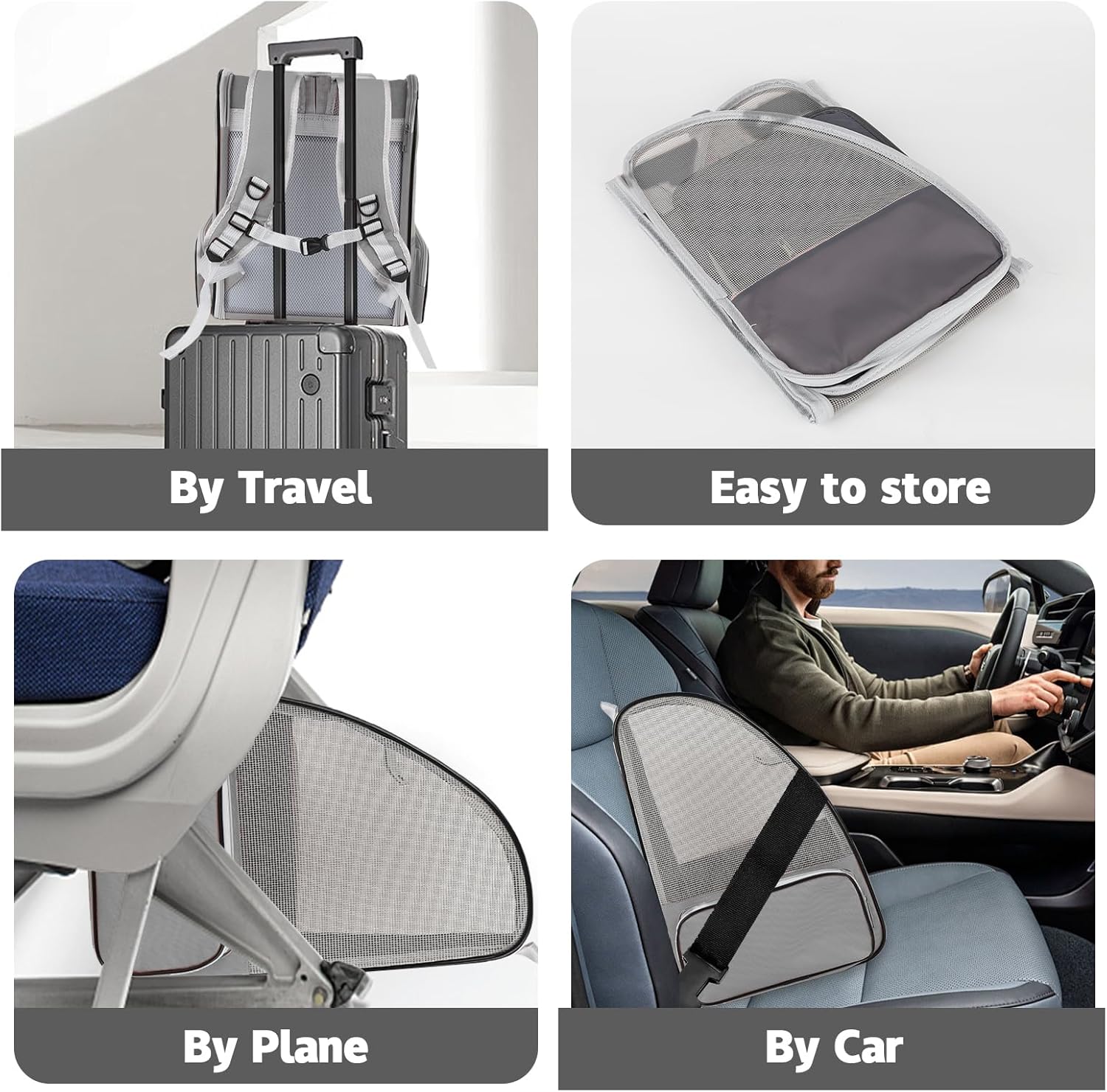 • Foldable and Portable: You can easily fold up your cat carrier backpacks when not in use and it will only take up very little space. This pet travel carrier can be conveniently worn over the shoulders, secured in a vehicle with a seat belt, positioned on your luggage, or carried using the top handle
